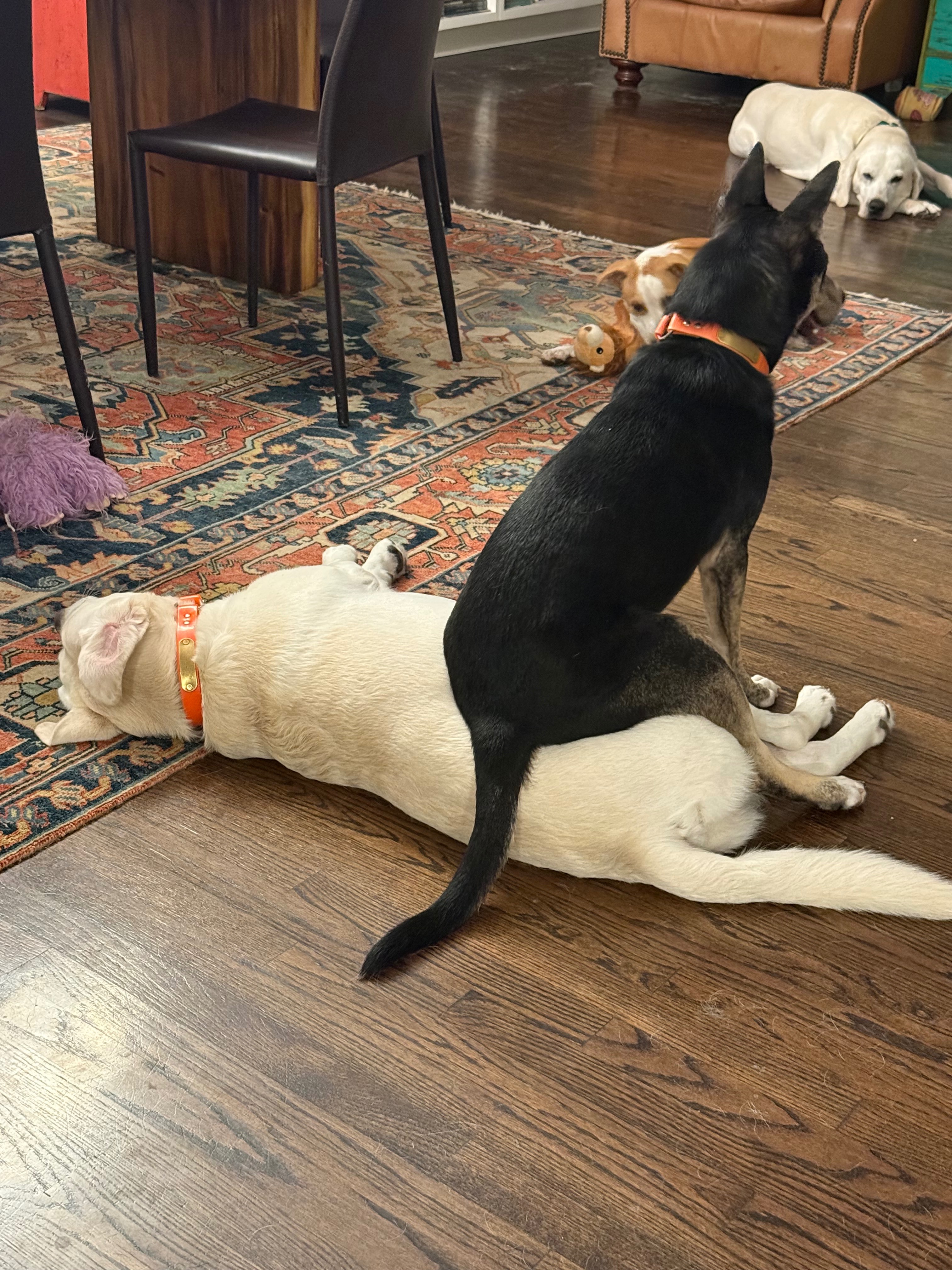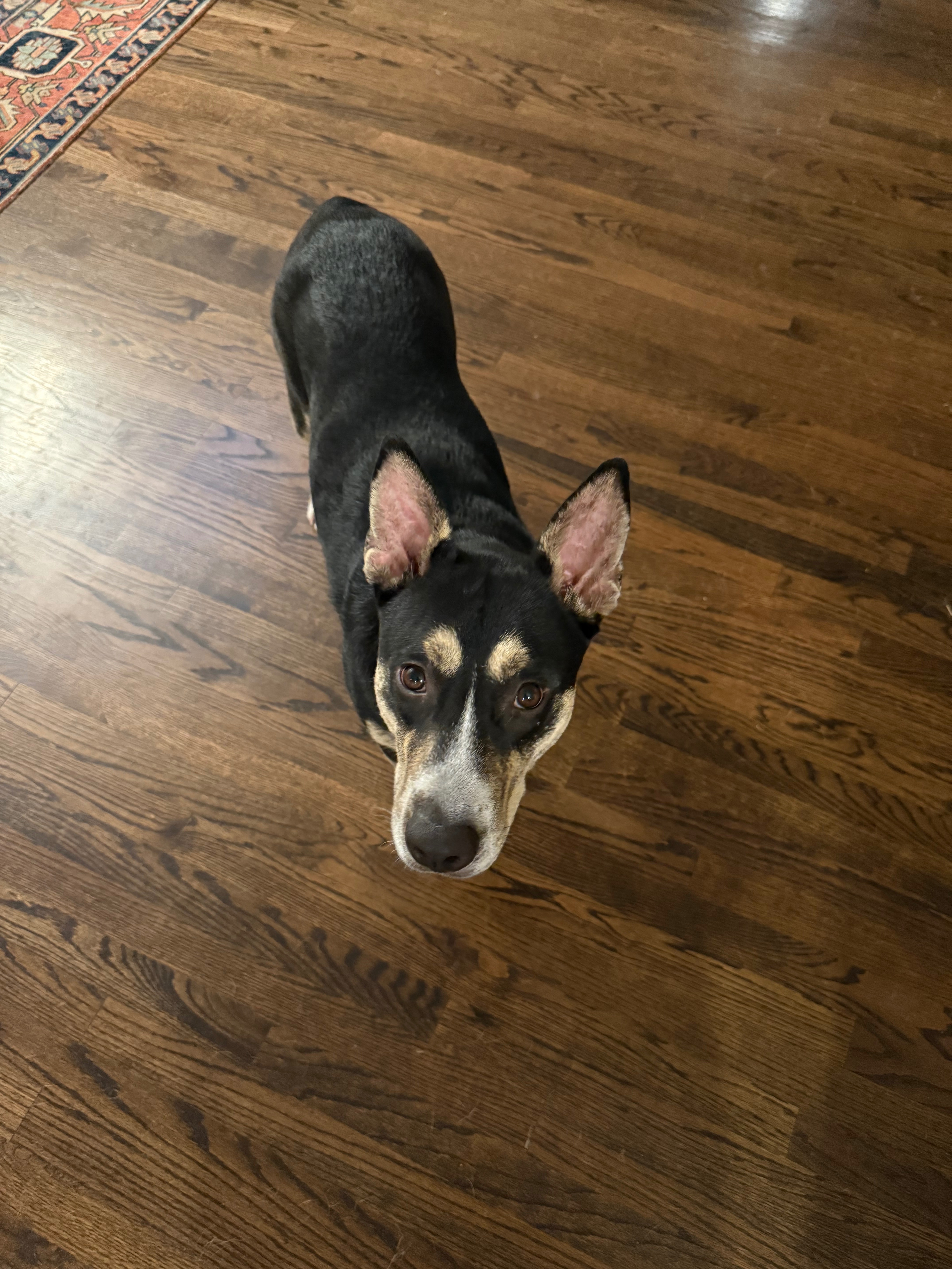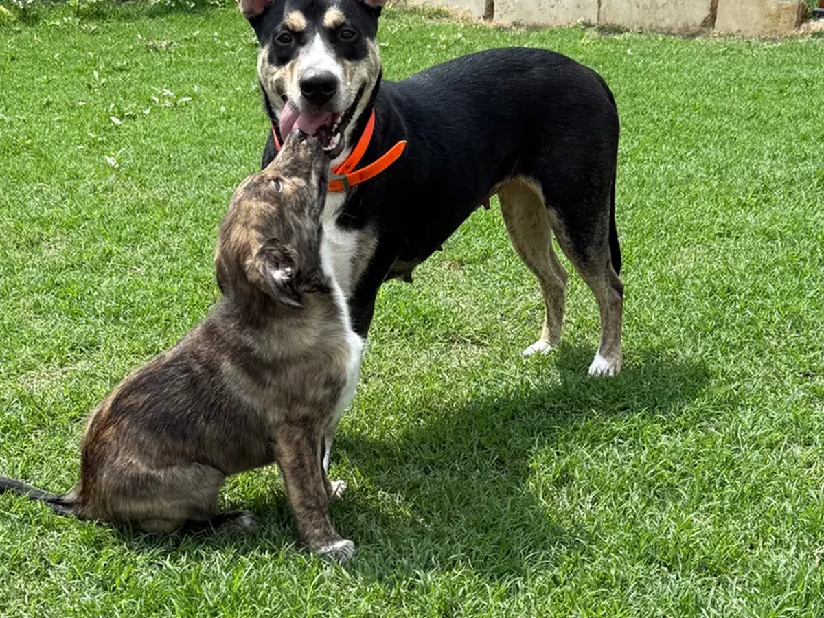 In January of 2025, I saw a very pregnant, very scared shepherd mix and made it my mission to rescue her. Ten days later, her puppies were born, and the neighborhood banded together to rescue them and the Mama Dog, who we eventually named Abbey. For two days, we tried to capture Abbey with no luck. With the severe winter storm blowing in and the sun setting, we knew it was time to take her six-day-old puppies home to be warmed and fed. As we drove the block and a half home, Abbey followed us the whole way. We pulled the car in the driveway, opened the garage, and walked into the kitchen, going to the sink to help the puppies go potty and then set to bottle-feeding 11 puppies. I was fully prepared to sleep in the whelping pen to feed puppies every 90 minutes for the next three weeks. My husband left shortly after helping me inside so he could help disassemble the pen we had been using to try to catch Abbey. He left the garage door open; the door to the garage was closed but not latched. A few moments later, I heard the all-too-familiar sound of toenails on the hardwood floors. Thinking it was our chocolate lab, I turned to say hello, quickly realizing that it was Abbey. Abbey looked at me as if to say, "Hey, you have my kids." Moving slowly and giving her a wide berth, I managed to shut the door to the garage, accomplishing what we had tried for two days.