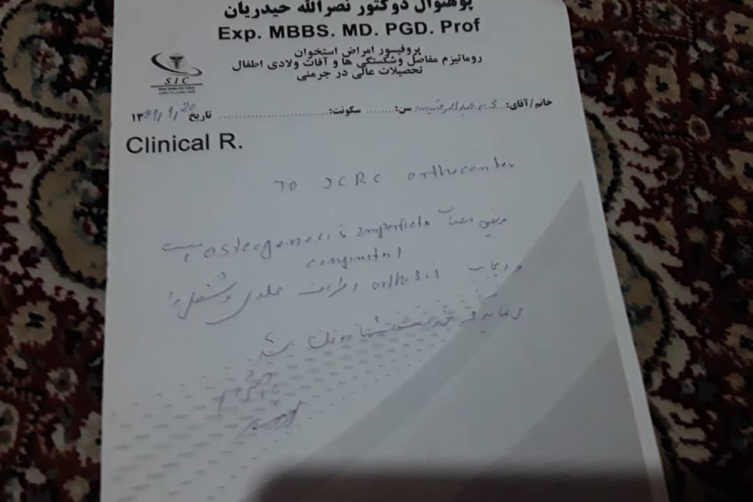 My cousin Abdul Raqip is 10 years old. He lives in the western province of Herat in Afghanistan. Since birth he has suffered multiple bone fractures and breaks. It’s like his bones are made of glass. My aunt and uncle couldn’t figure out what had happened to their son. There has been no medical diagnosis or medical treatment. Only through my research did I discover that his condition has a name: brittle bone disease or osteogenesis imperfecta.