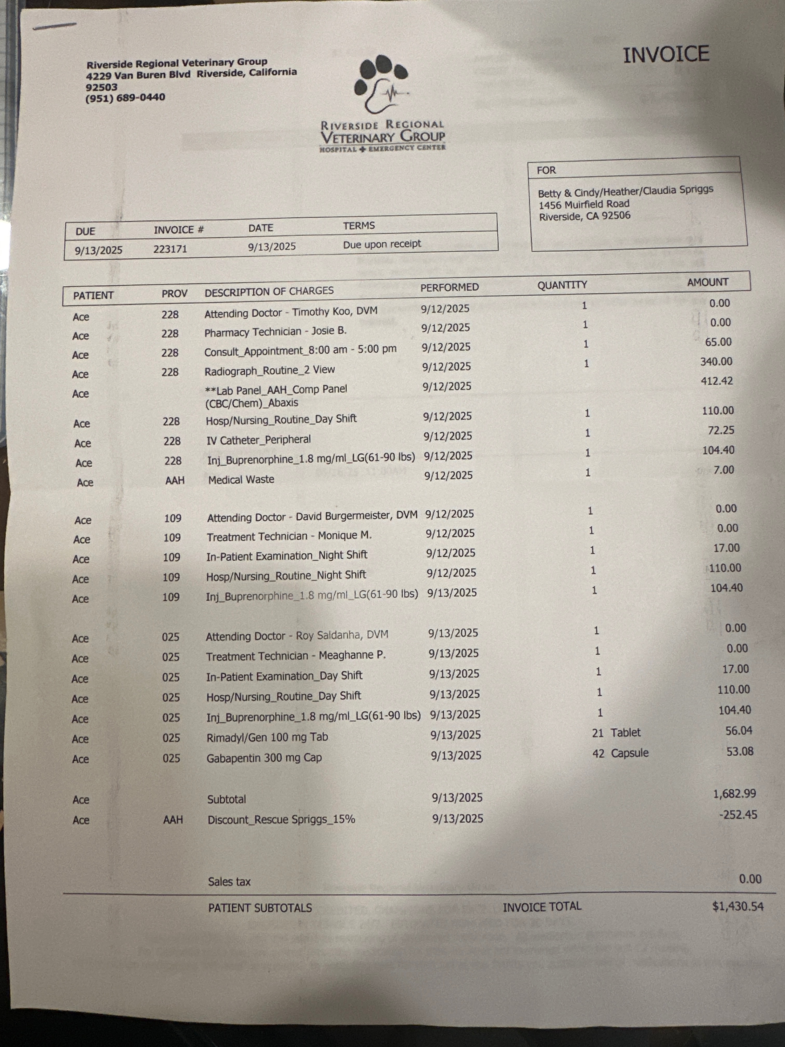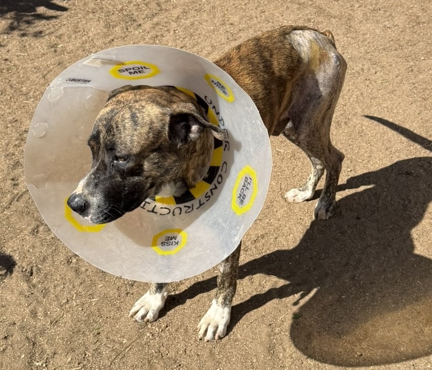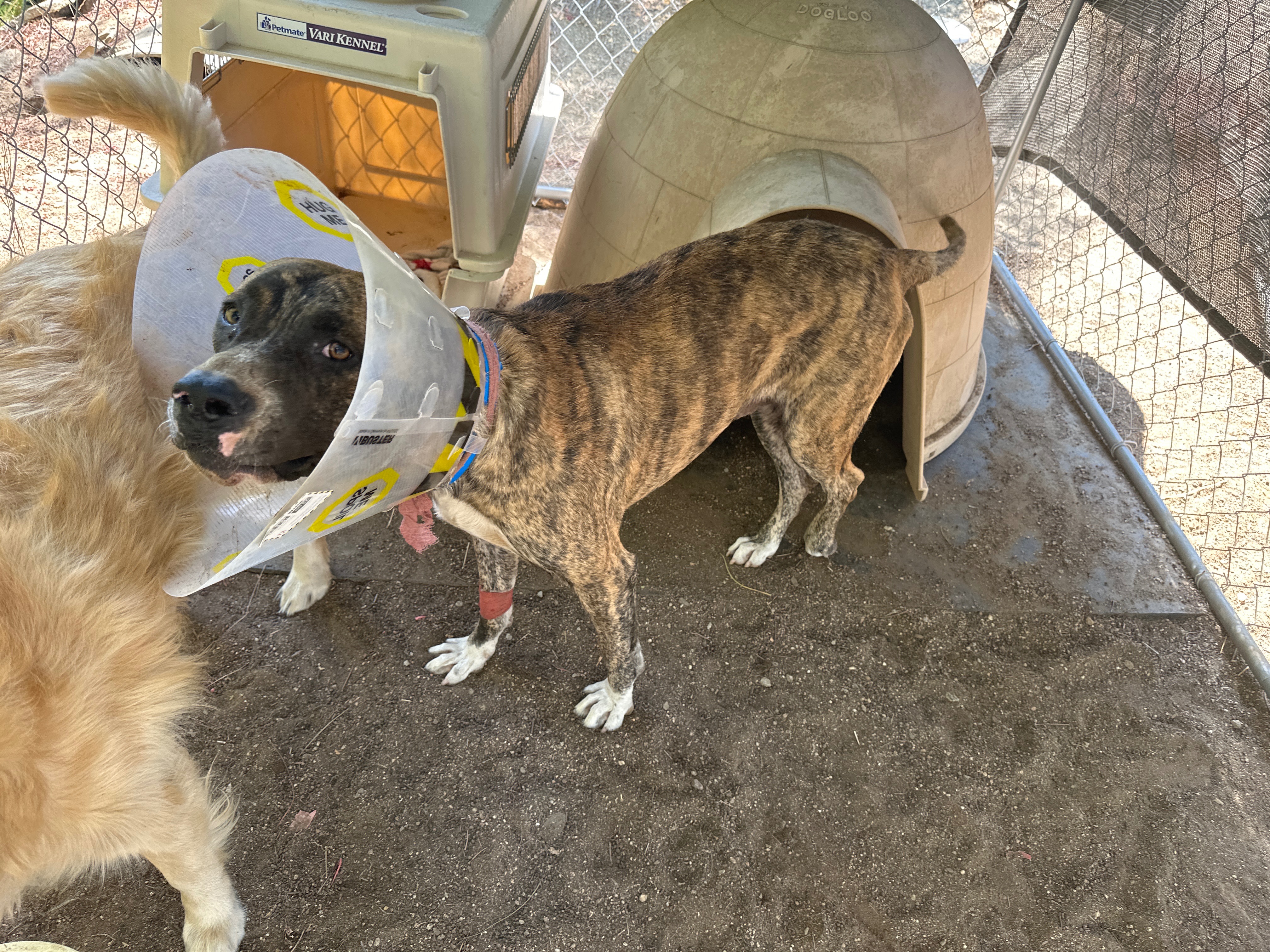 Hello, my name is April and I’m an animal lover and a caregiver for the elderly. This beautiful young dog we decided to name Ace came to us with his friend. It looks like he got his injuries from getting hit by a car on Sunday, 9-7. We held the dog in a dog run until animal control was called. They never came on Sunday. I called Monday morning, and they said the shelters are over capacity and that to ensure the dogs would survive, I could foster. I told them yes, but the injured one would need to be seen for his injuries and that I would foster when the three-day hold on the dog was up. During those three days, I learned the only thing they did for him was give pain meds and take x-rays. No other treatment was done.