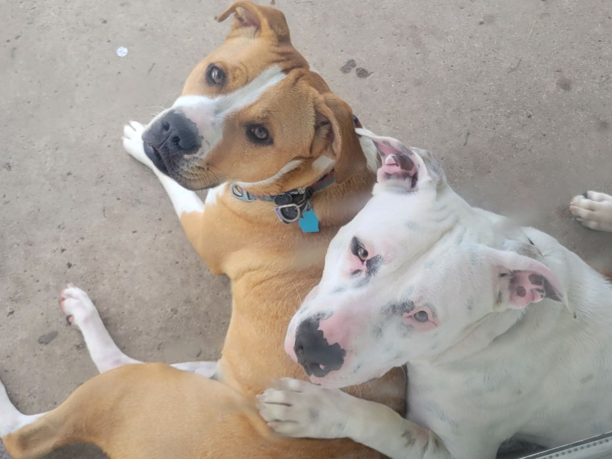 Acorn is a 2-year-old mixed breed; we suspect boxer and pit bull. We rescued her from the Humane Society of Huron Valley back in December of 2022. She was just a small puppy, found alone.