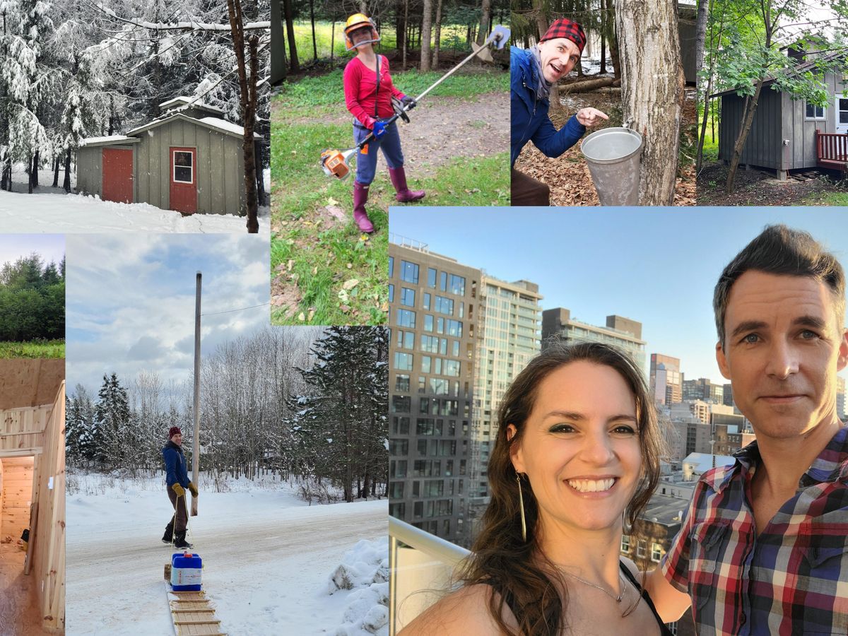 Nous sommes un couple qui désirons construire notre vie de rêve sur notre 1 acre de terrain en Estrie. Nous avons le privilège et l’occasion d’entreprendre humblement ce rêve dans notre petite cabane rustique avec 4 murs légèrement isolée et un peu l’électricité. Elle n’a rien de plus; pas d’eau potable, ni salle de bain ou cuisine. Entourés d’érables, de sapin, de pin, de sable et d’eau, nous transformons notre petit nid d’amour en fermette fructueuse; avec un potager, un jardin floral, des arbres fruitiers, des fruits des champs, une ruche d'abeilles, quelques poulets et une cabane à sucre, le terrain deviendra l’oasis tant convoitée par nos désirs. Grâce à notre débrouillardise, notre imagination et un travail ardu, nous avons déjà accompli plusieurs étapes et même collecté notre première saison d’eau d’érable.
