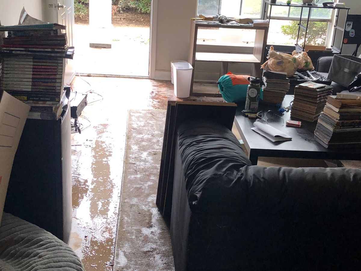 My roommate Andrea and I moved into our cozy, ground-level place at Peachtree Park Apartments in mid-July. We are both Atlanta natives and love living in this city. On Thursday September 26th hurricane Helene blew through Atlanta. A little after midnight water began to seep and bubble up through the floorboards. Water from the creek out back rose at least 20 feet due to the constant downpour and was up against the back door.