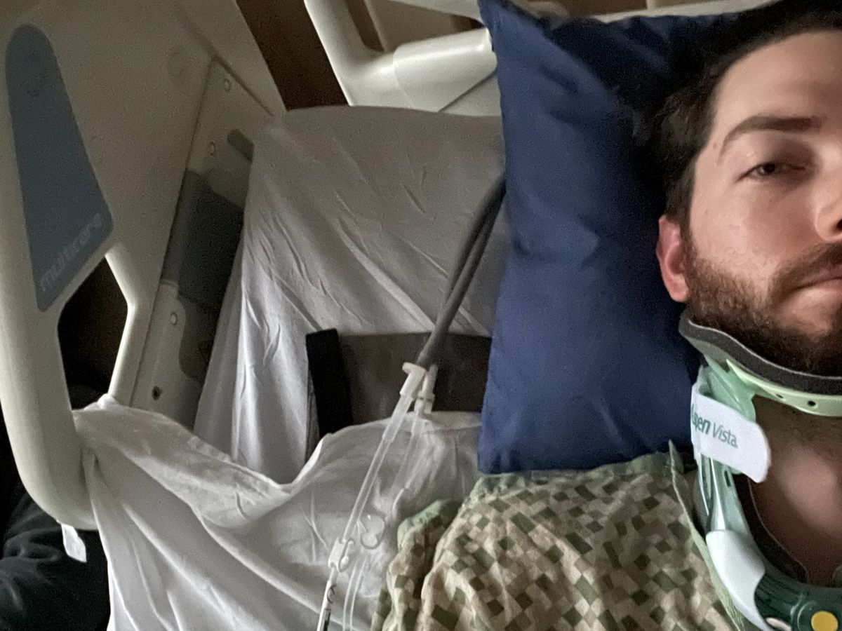 Alex is an expert skier. He was skiing an intermediate run with our Dad Feb 4th 2023 in Mt Hood Oregon. He was wearing a helmet and wasn’t skiing particularly fast when he caught an edge perfectly wrong. He was ejected from his skis and landed headfirst. At first, they thought he had only broken his arm or shoulder due to extreme pain and finger numbness. Ski patrol evaluated him and advised him to go to the nearest hospital. My Dad and Sam drove him there immediately. After multiple CT scans and an MRI doctors realized it was worse than they thought. Alex had had soft tissue injuries in his neck and shoulder, whiplash, and three damaged spinal disks, and his C7 vertebra (located at the bottom of the neck) was broken. The damage was severe enough that the vertebra are loose and slipped from side to side between scans. He was life lighted via ambulance to a level 1 trauma center in Portland to be evaluated by neurosurgeons.