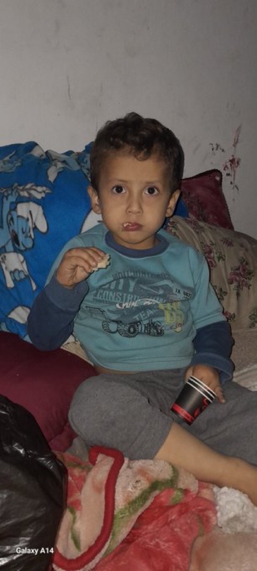 He does not know how to play, nor does he know the taste of most foods, fruits, or the needs of children. As for Yahya, who is one year old, he has been deprived of everything, even his milk, which we cannot provide due to its high price. Diapers are also difficult to obtain.