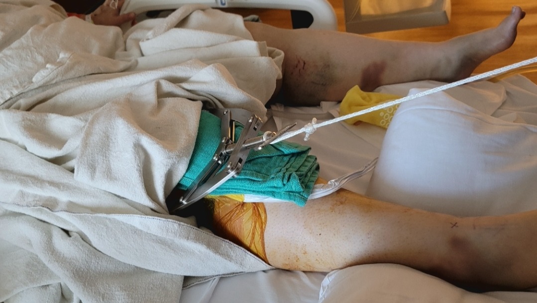 Hi, I'm Brenda and on April 21st my husband Jim and I received one of those calls a parent never wants to receive. Our daughter, Alicia, had been in a horrific car accident and was being transported to a Houston area trauma center and being prepped for surgery. That surgery was to repair a compound fracture of the right femur. It wasn't until later that night we would learn the extent of her injuries and impact they would have on her life. A dislocated, badly fractured right hip that now has two plates, screws and pins, missing cartilage that just broke off and cannot be repaired, and a small piece that they just couldn't do anything with so she now has a 50 cent piece sized of bone missing, a compound fractured right femur (lots of hardware is part of that now), a substantial cut that went to the bone and severed the tendon above the right knee, a fractured pelvis, a left fractured rib, and a left fractured foot. Numerous doctors said that she was lucky to be alive. We are in the process of moving her home so we can take care of her and help her with her rehabilitation.