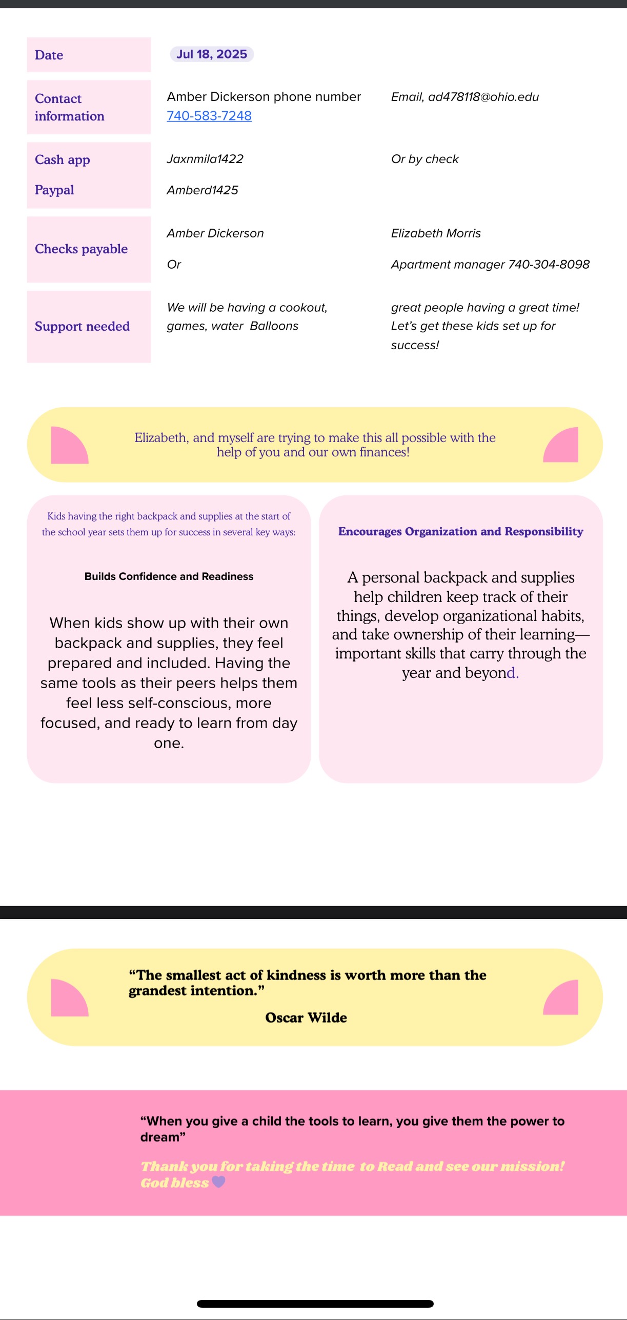 We’re personally covering the costs of food and activities for the cookout, but we’re asking for help with raising $500 total:
