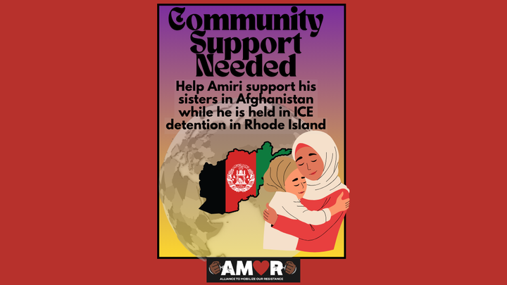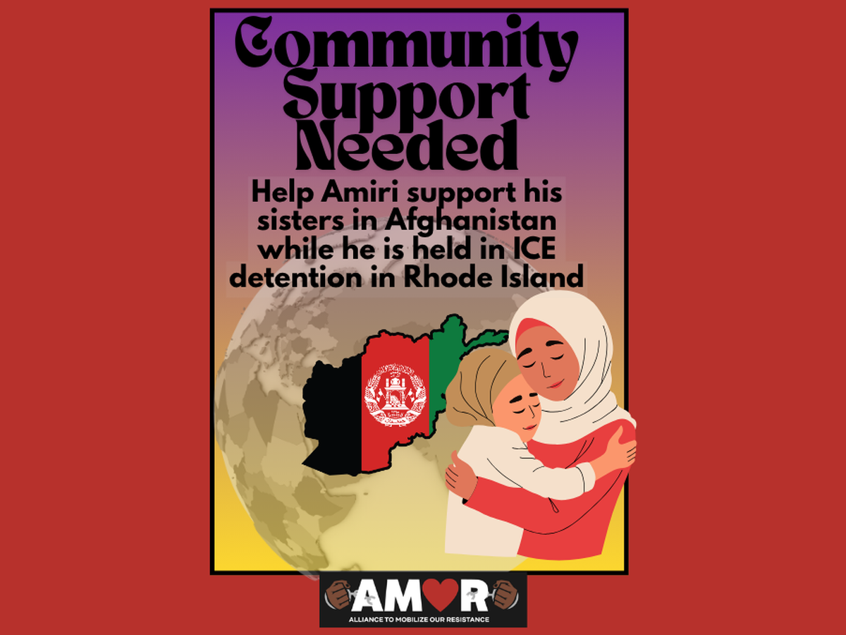 Amiri was detained by ICE in July and is currently imprisoned in the Wyatt Detention Facility. Amiri's two sisters live in Kabul, Afghanistan and rely on his financial support, but ICE detention has prevented Amiri from sending funds to his family. Amiri's mother died in August, and his family is suffering during his detention and struggling to make ends meet. AMOR is collecting funds which will go directly to Amiri's sister, to support living costs during her brother's detention in Rhode Island.