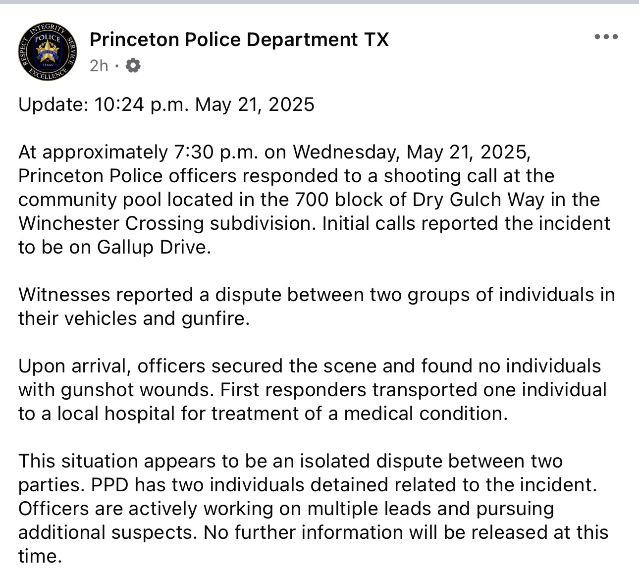 Princeton Police Official Press Release