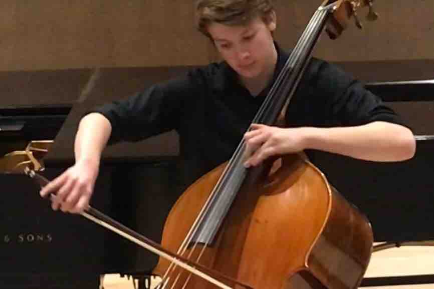 My name is Sam Stover and it is my dream to be a bassist in a symphony orchestra. Ever since I was a little kid, I hoped to play bass. I have had the privilege of learning from several amazing teachers. They ignited my passion for playing and encouraged me to constantly forge ahead. Currently, I study with Donovan Stokes whom I met through the Bass Coalition in Winchester. I am so fortunate to be studying with such an accomplished bassist. I travel two and a half hours from Pennsylvania to Virginia in order to study with him (and then home again!). I also am a member of the Peabody Youth Orchestra under the direction of Ankush Bahl. When I first heard the Peabody Youth Orchestra (PYO) in 6th grade, I knew that I wanted to join their ranks. I practiced tirelessly through the summer... even on vacation at the beach! I was rewarded with the invitation to join the talented and supportive bass section in this Baltimore based orchestra. I am a current student member of the International Society of Bassists (ISB) and traveled to Ithaca to learn from the wealth of knowledge from its members last June. Dr. Stokes, the PYO, and the ISB have helped me to grow so much!