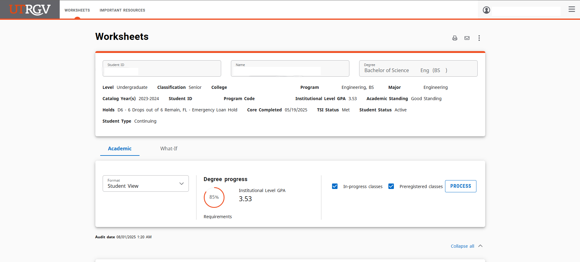 He trabajado increíblemente duro para llegar hasta aquí. He completado el 85% de mi carrera, mantengo un promedio de 3.53, he estado en la Lista del Decano y sigo comprometido con convertirme en el primer ingeniero de mi familia.