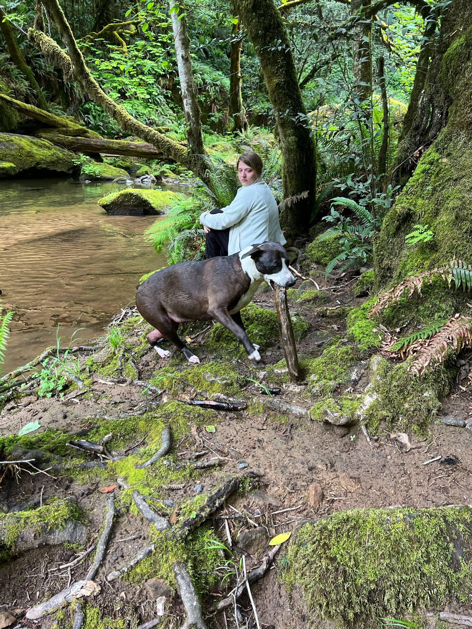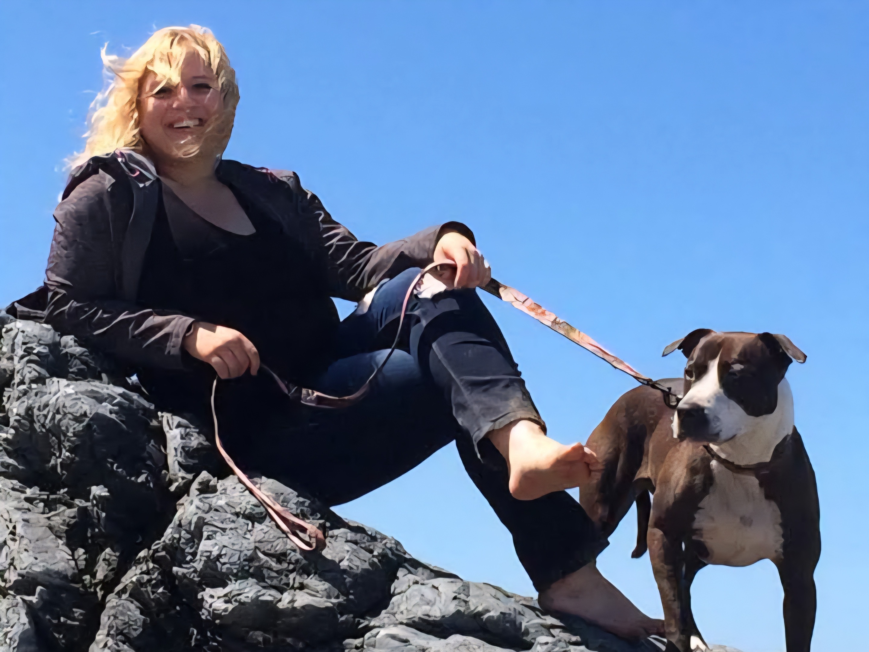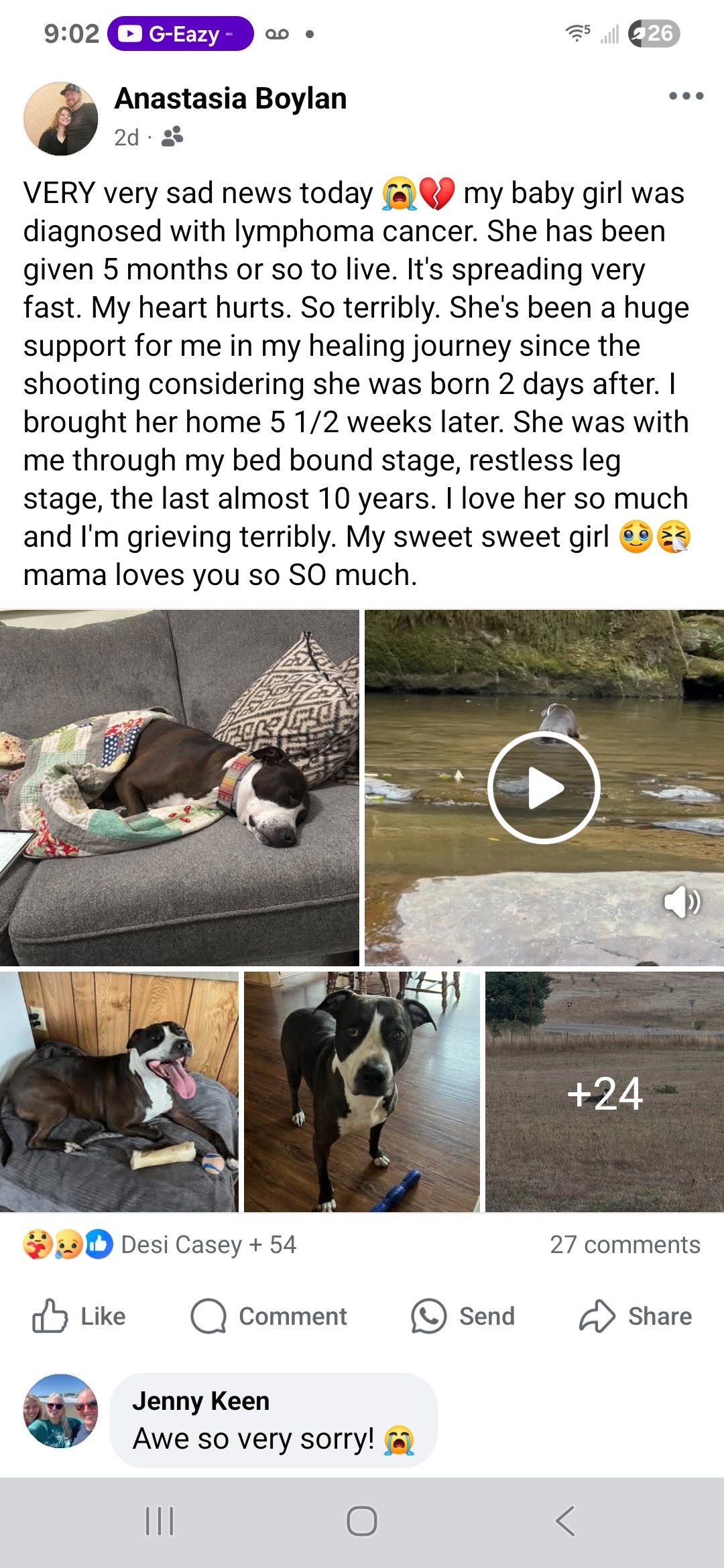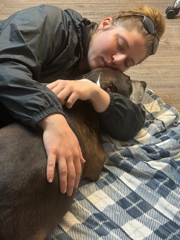 Hi, my name's Anastasia Boylan. I'm a UCC shooting survivor from October 1st, 2015. My dog, pictured here, was born 2 days after the shooting on October 3rd, 2015. She was my therapy dog and my best friend. She could recognize when I was having anxiety and depression from my PTSD, and she could pull me out of it in an instant by cuddling me and applying her warmth and pressure to my chest. She would lay on my right leg with nerve damage and keep it from kicking, and she would support my back at night so it didn't hurt so bad when I slept. I was shot in my back during this mass shooting. I lost 8 of my classmates and my professor, as well as 12 other survivors, including myself. 8 of the 12 were injured and 4 were uninjured. I've gotten PTSD therapy, physical therapy, and had a chiropractor, but nothing helped me as much as my dog.
