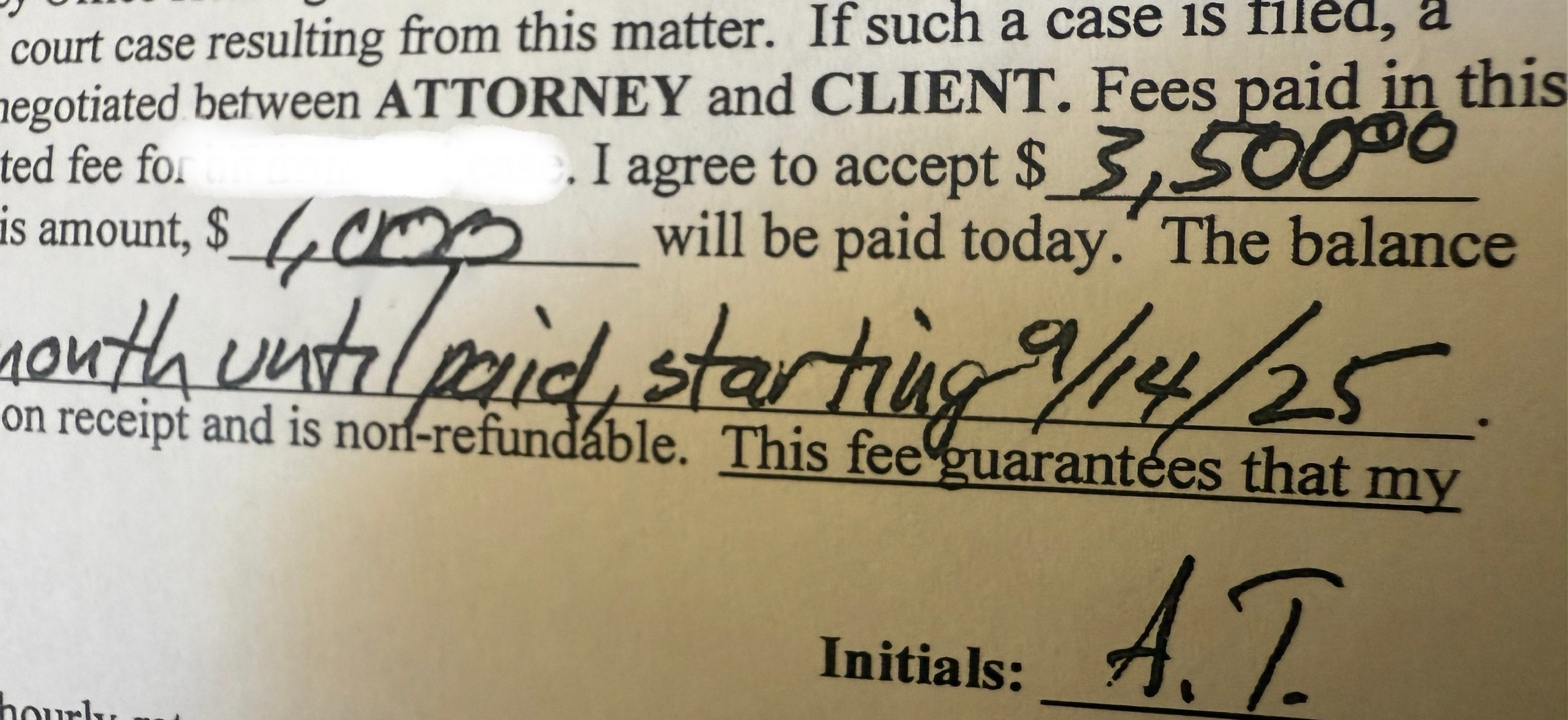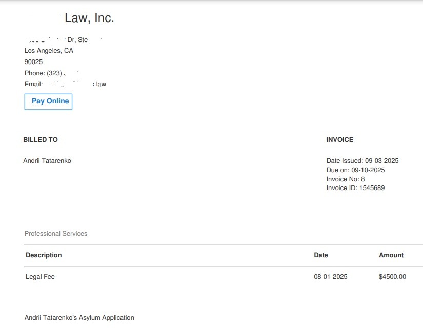 I had to spend even more money because of the urgency and the lack of time to complete a heavy load of legal work. This pushed me into more debt, and I still owe my attorneys for the work they have already done. Since the process is not yet finished, I expect further legal expenses down the road. My attorneys are high-class professionals and people of good character, they have been extremely helpful and patient, but I can’t expect them to do more work until I pay for what they’ve already completed.