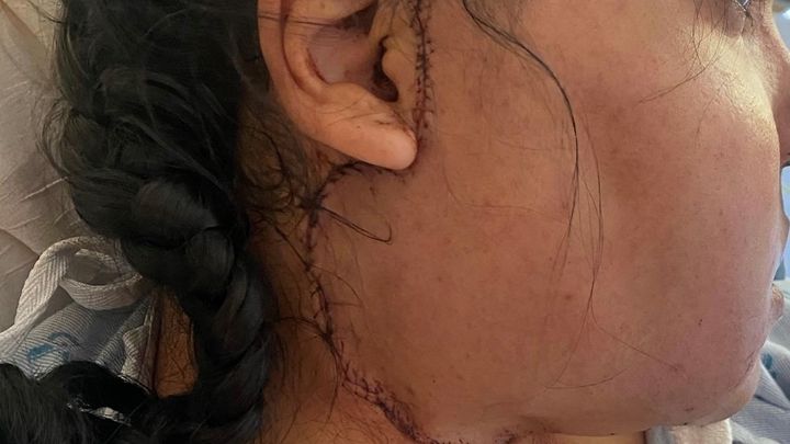 She went to the doctors and the dentist and each one said it was really nothing. Maybe TMJ. She kept pressing for answers and It wasn't until the middle of June that she has a CT scan done and it showed a mass that was already eating away at her jaw bone. Thankfully she immediately saw Oncology, was referred to UCSF, had a PET CT and biopsy done. She received the results that she has two types of rare cancers in her cheek and jaw. Once she received the results everything started moving so fast for her family and they had little time to process everything. She had already had a 14 hour surgery on her jaw where they also did a done graft from her leg. She now has a month of recovery ahead of her.