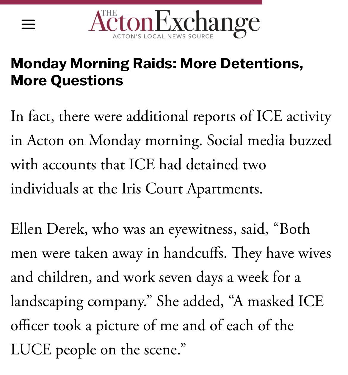 Hola a todos, mi nombre es Jocelyn Escobar. Gracias por tomar un tiempo para leer. Estoy haciendo este GoFundMe para ayudar a mi amiga Angelica que está pasando una situación difícil que muchas familias están pasando. El esposo de ella fue detenido por ICE el lunes afuera del edificio donde ellos viven en Acton, MA. Él tiene su permiso de trabajo y licencia de conducir y estaba empezando su compañía de landscaping. ICE llegó buscando a alguien más, pero él estaba en ese momento allí y se lo llevaron. Solo él trabajaba y mantenía a su familia, y ella se dedicaba a cuidar a sus hijos. Ahora ella necesita ayudar a su esposo y pagar un abogado, pagar su renta, sus biles, y comprar necesidades. Ella tiene miedo de salir de su casa o de ir a la tienda sola, y su hijo no quiere ir a la escuela ya porque no quiere regresar un día y darse cuenta de que se llevaron a su mamá también. Él es un hombre trabajador, trabajaba 7 días a la semana para mantener a su familia. Cada granito cuenta. Muchas gracias a todos por su ayuda. Dios los bendiga y les multiplique.