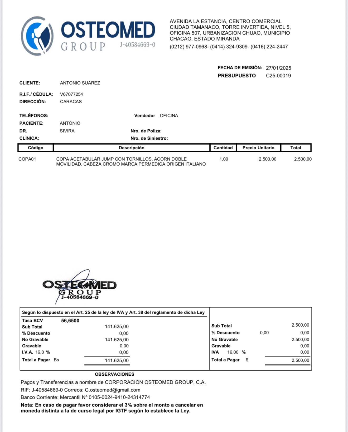 Recently, after yet another surgery to treat osteomyelitis, Antonio now needs a definitive procedure: a complex hip replacement surgery (revision hip arthroplasty) to restore his mobility. The total cost of the prosthesis, hospitalization, and medical expenses is approximately $10,000—an amount his family simply cannot afford.