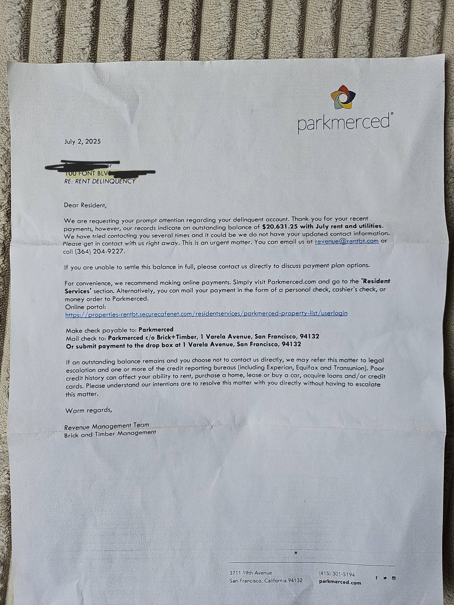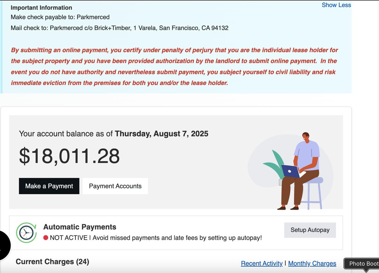 Anzara joined a house with 2 others (both international students) near campus, one of whom was the main lessee, who handled the paying of rent, communication paperwork etc. After 2.5 years of living together and never missing her portion of rent, last month, she noticed a letter addressed to the master lessee from Parkmerced (landlord company) left under the door, calling for an immediate requirement for payment, or face eviction plus a legal case brought upon for the debt owed, which turned out to be over $20,000.