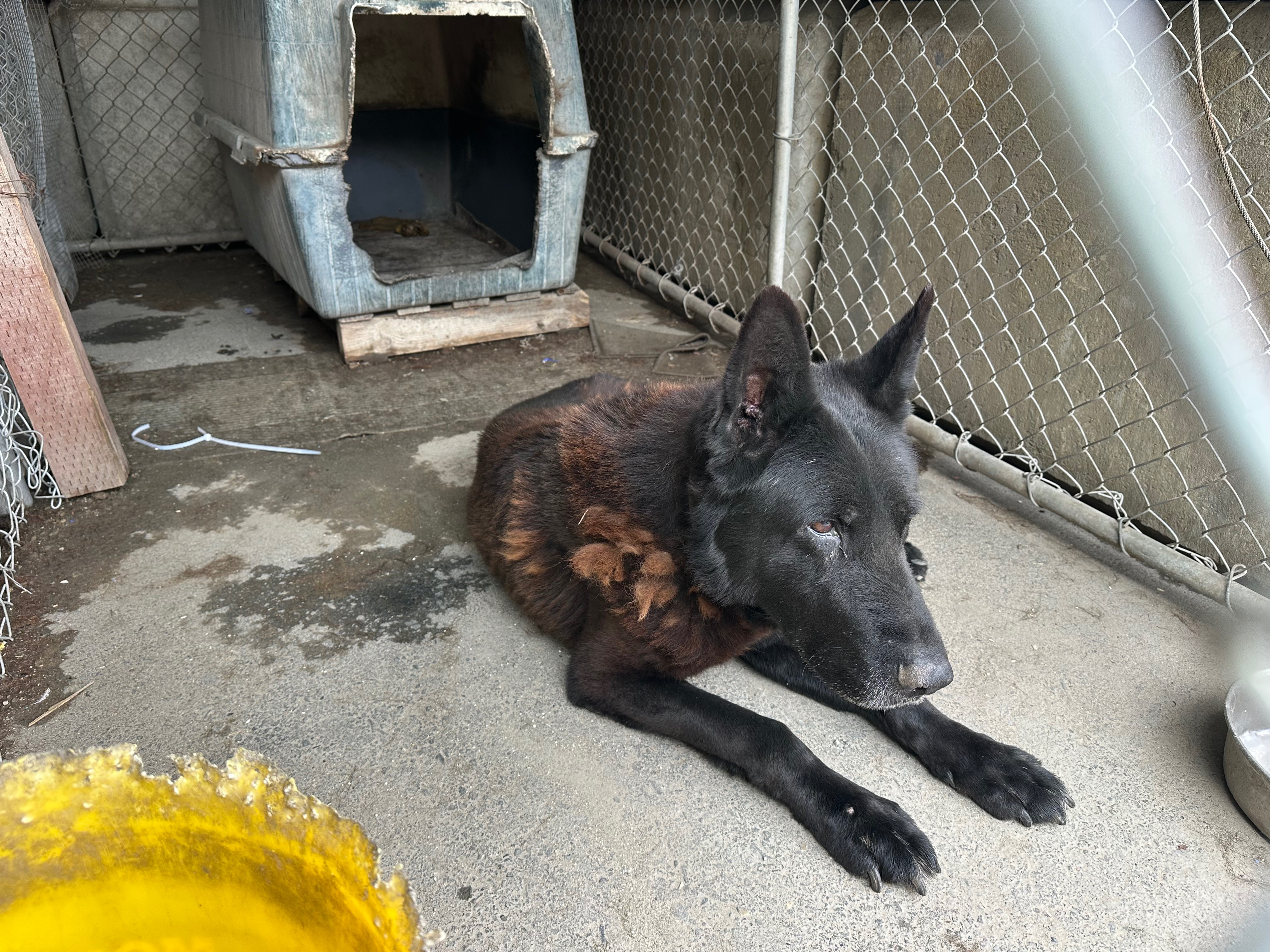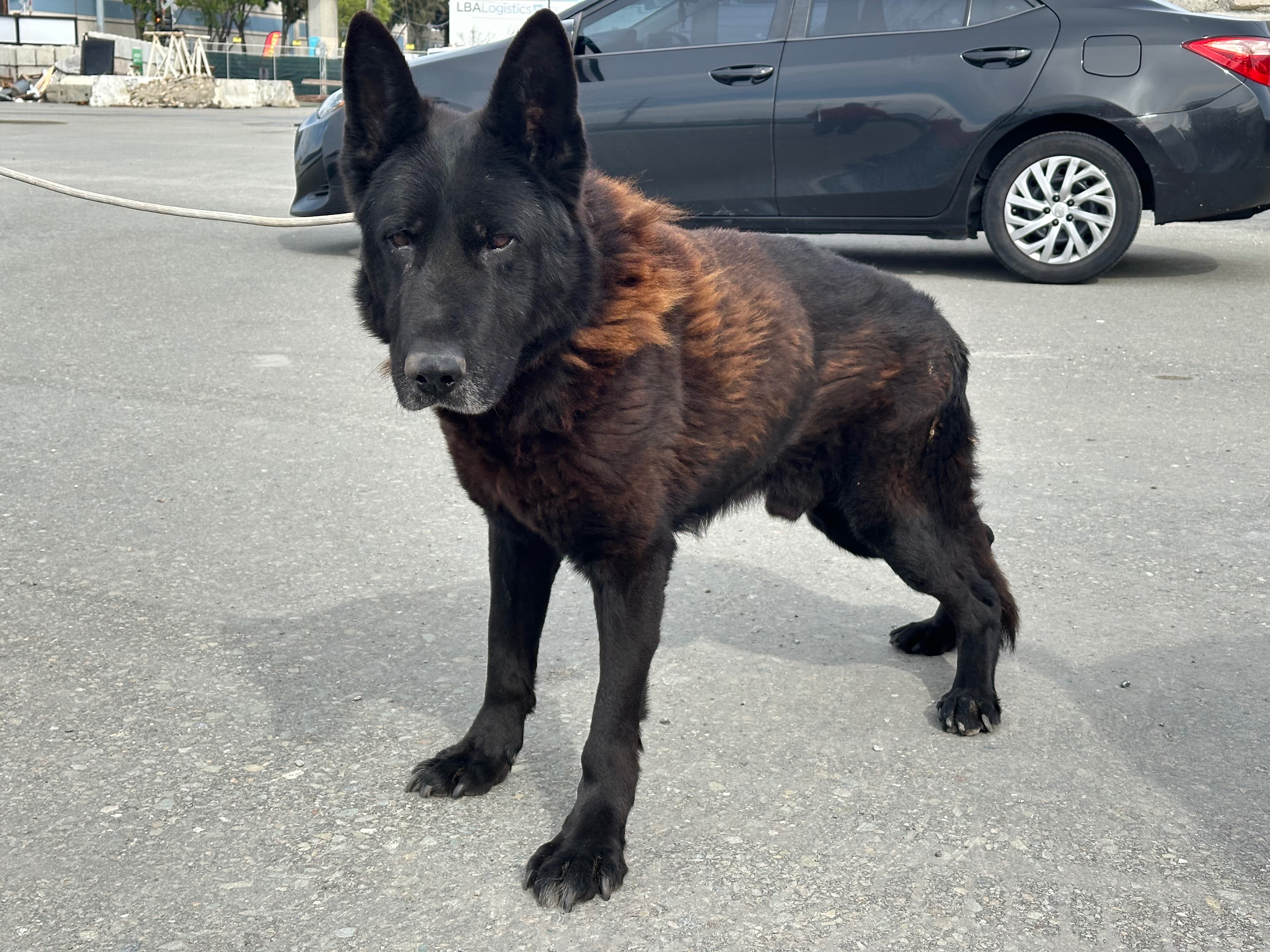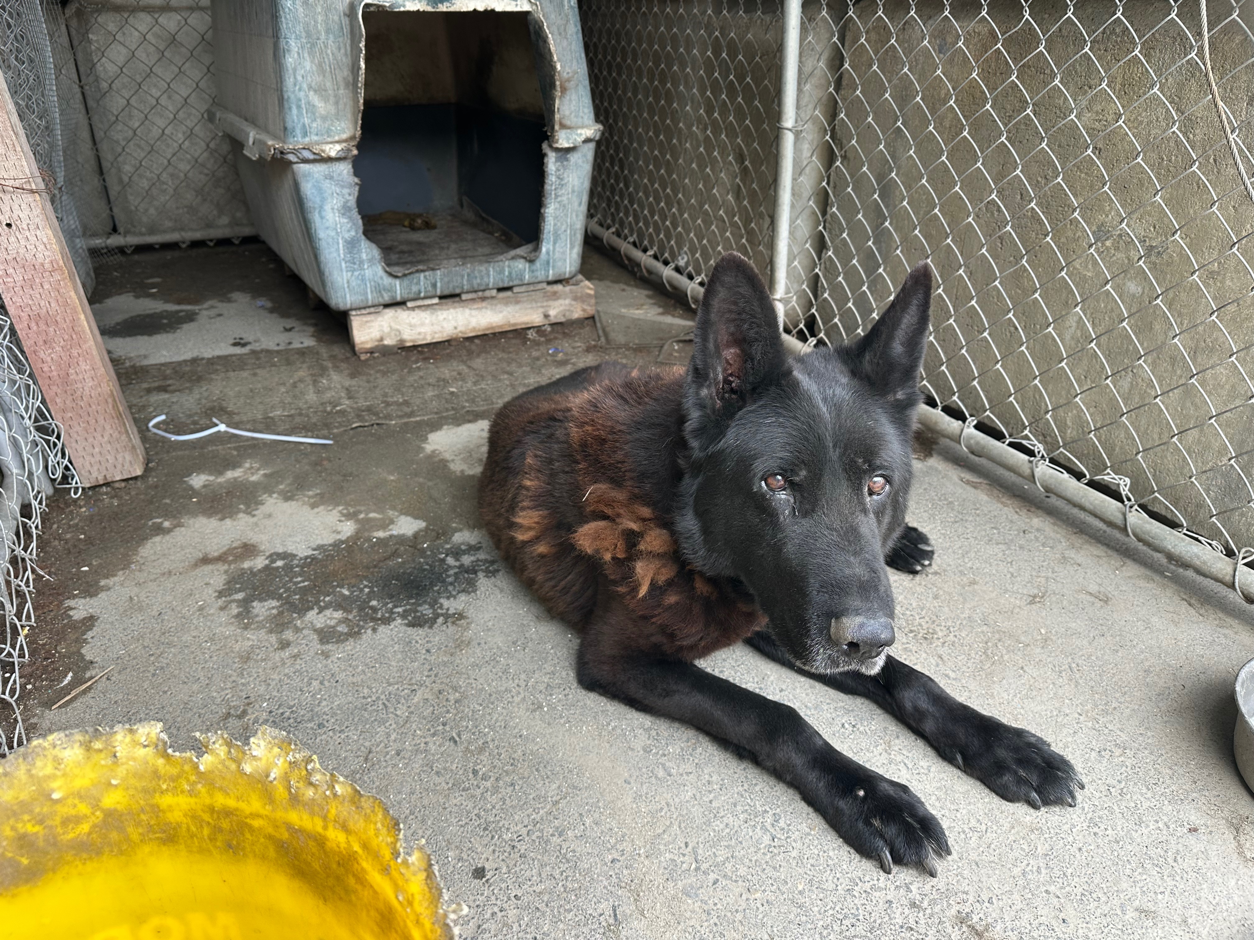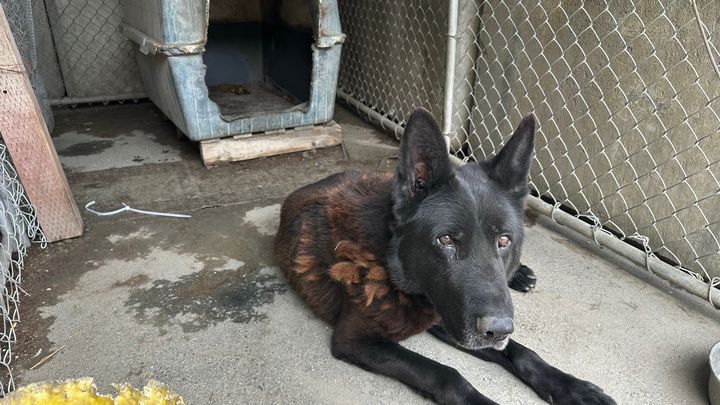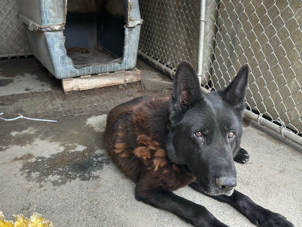 Arthur is a ten-year-old guard dog who has spent nearly his entire life working at an aggregate facility. For years, he lived in a cage with only a basic dog house and no bed, faithfully serving his role as a protector. Despite his tough exterior, Arthur has always shown a willingness to please and a good spirit beneath the surface.