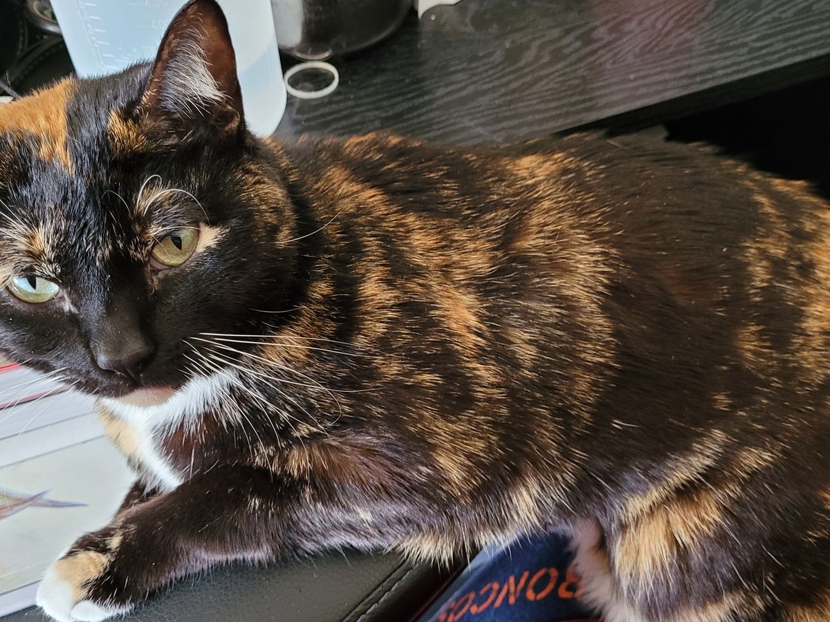 Arya Stark (First of her name, Queen of the Rocky Mountains, Diva of the Kitchen, Princess of the Perch, Watcher of Pigeons) is a 2-year-old female Domestic Shorthair Tortoiseshell. I adopted her almost immediately after returning to Colorado after living in Illinois for a few months. Living with a cat there convinced me that having a cat of my own would be good for my mental health. And she has been. Arya is my rock, the reason I wake up in the morning, and I sleep better knowing that I'll see her in the morning. She isn't the most cuddly of cats as she hates being picked up, isn't very good at sitting on laps, and runs from dishes being rattled, but that's all part of her tortitude. She knows when I'm feeling down, greets me every morning by pawing at my face, and welcomes me home by stampeding down the stairs while meowing. Knowing that she's in pain and seeing her go from a good weight to being able to see her hip bones and feel her individual spine bones has been devastating.