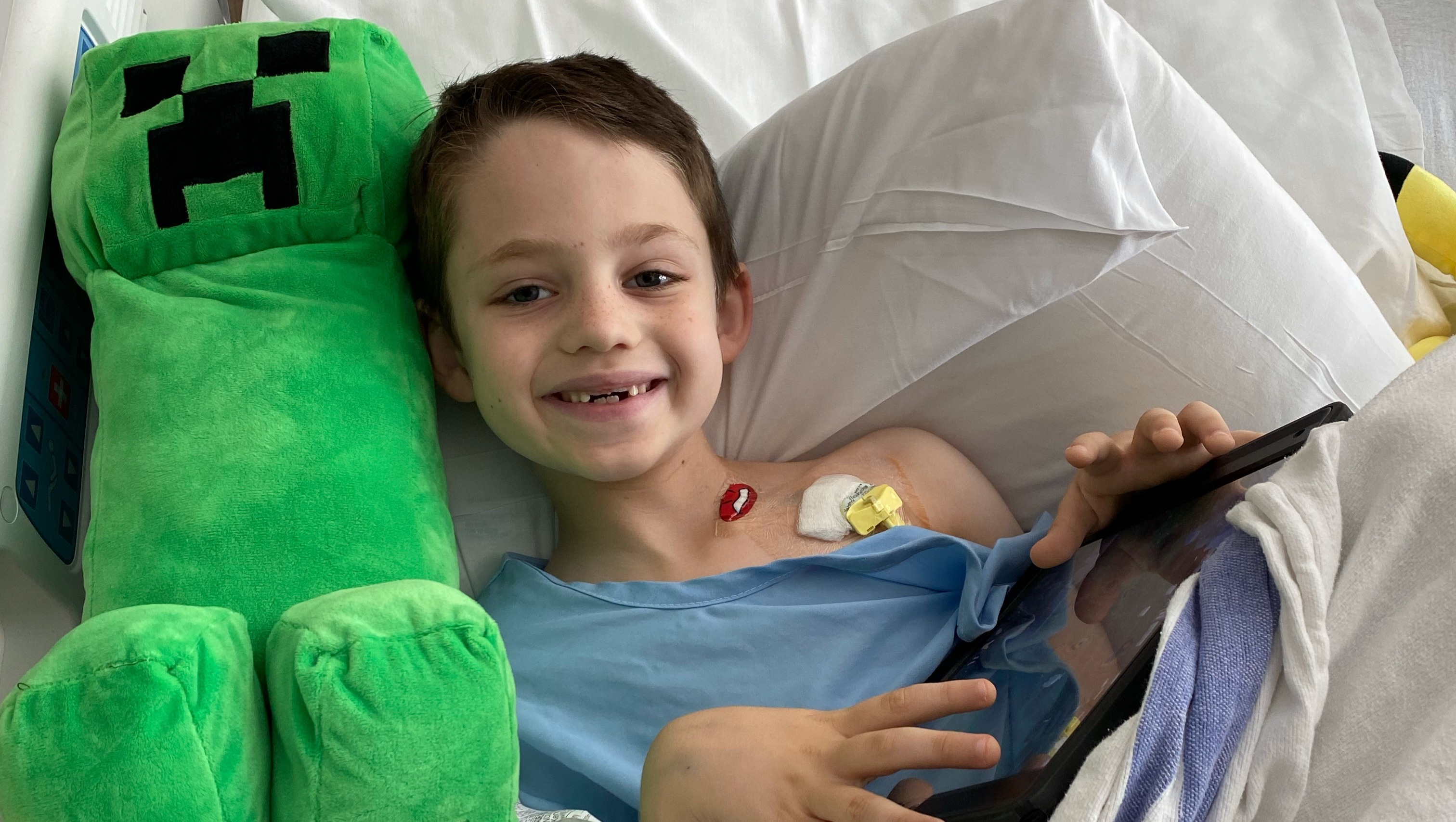 Unfortunately that appointment never came. On Friday August 6th, 2021 Asher had been unable to walk or break his fever for 2 days. Tara and Josh decided that enough was enough and they packed a bag and drove up to MUSC in Charleston. That evening he was admitted to the Children's Hospital and the battery of tests were started. On Sunday they decided to do a Bone Marrow Biopsy. Monday morning Asher went in for surgery. His first time ever being put under. He had his biopsy and kept fighting his fever, but finally that afternoon the fever broke and he was able to walk again. Monday Night they got the news- Biopsy came back positive, Asher has B Cell Leukemia.