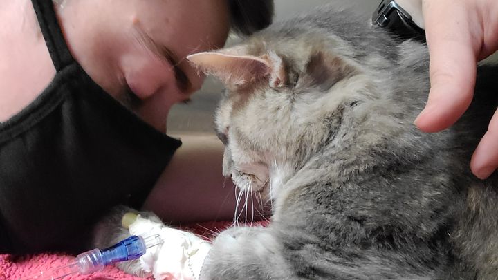 Akima is Ashley's beautiful, sweet furkid with the most soulful, wise, green eyes and the softest rabbit down fur. She and Ashley's other cat Zane haven't been apart for even a day in the last 16 years. Last Saturday, Akima wasn't with the other cats to yell at Ashley to get up and feed them breakfast. She proceeded to throw up bile multiple times throughout the day so Ashley took Akima to the emergency vet that night, just 12 hours after noticing her symtpoms. Unfortunately, the ER was so busy that Akima couldn't be seen for another 12 hours, at which point it was confirmed that she had pancreatitis and her body was in sepsis from a huge infection.