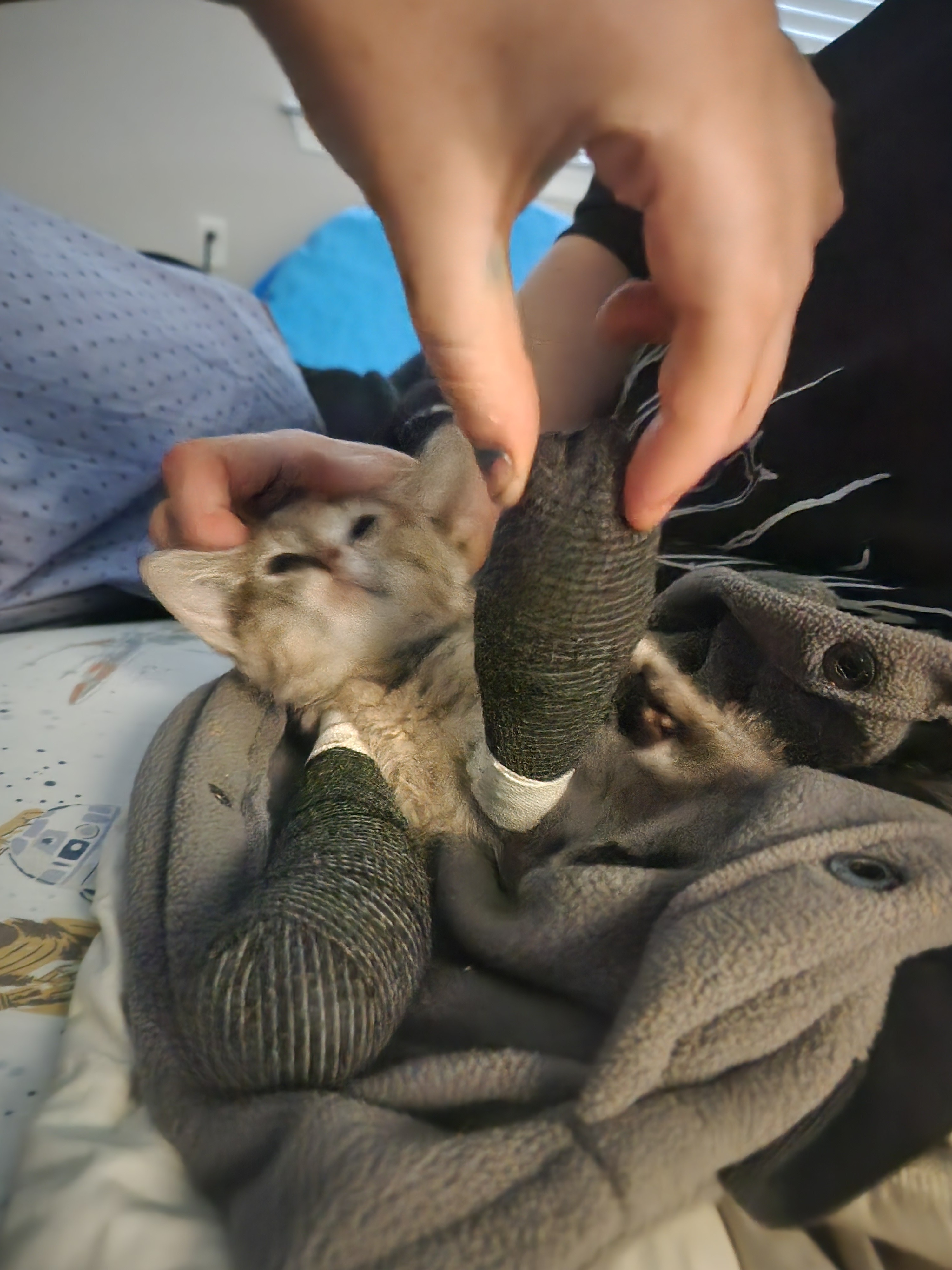 We tried saving both arms, but we will take what we can get as long as she survives. She's been a tough little cat, getting through multiple anesthesia sessions already! Anything helps, thank you.