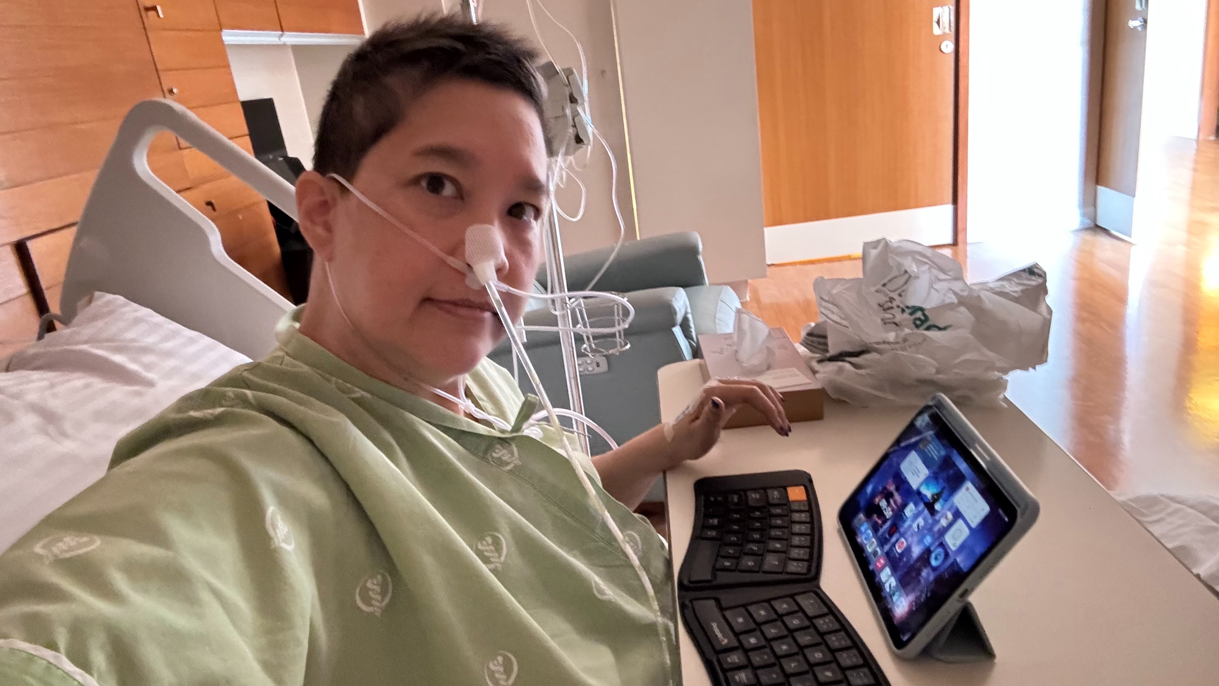She’s sitting next to me in her wheelchair right now writing. In 30 minutes we go upstairs to meet her 13th doctor. This one is an ophthalmologist. The next chemotherapy can cause eye conditions and blindness. Lalana was practicing navigating her computer with a screen reader last night when she thought I was working and wouldn’t hear.