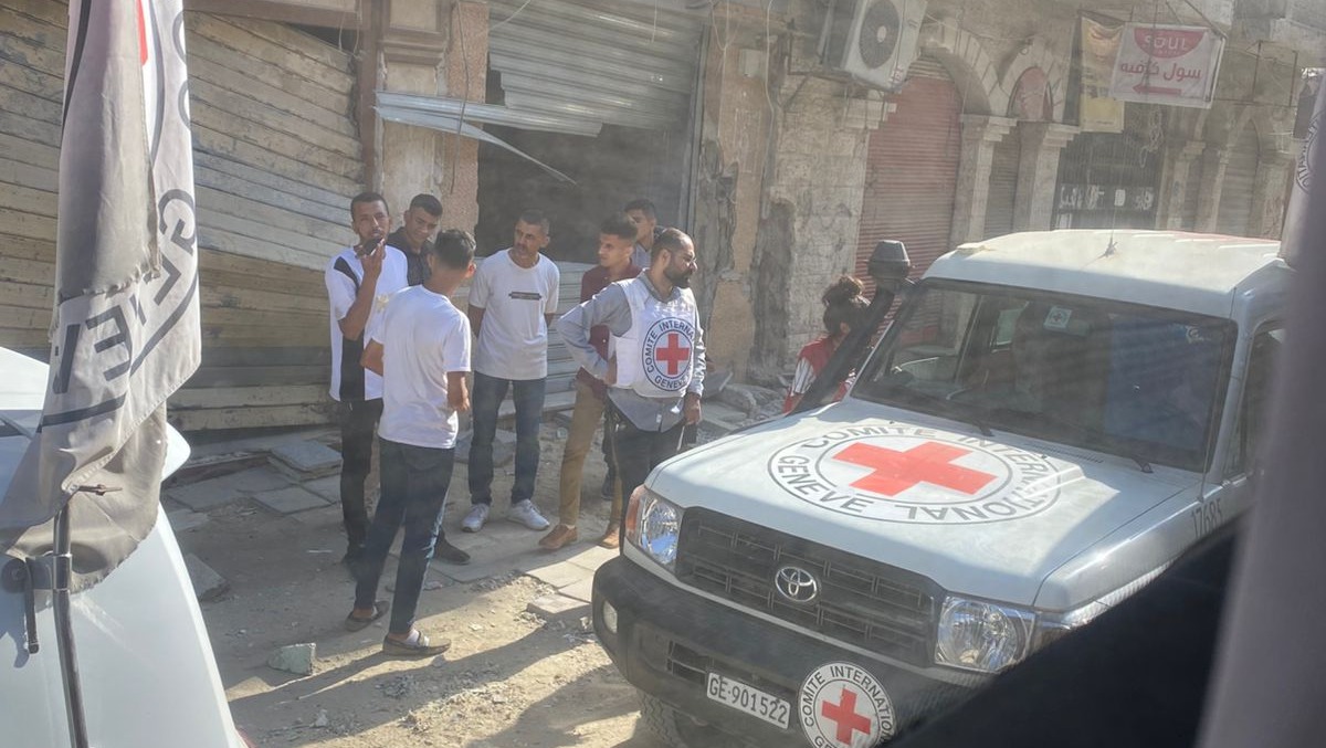Being escorted by the Red Cross through the rubble blocked and debri filled paths, in the early morning hours of September 29th, 2025, heading towards the Israeli check-point at Kerem Shalom. (Even then whether we would make it with body and limb intact was a big uncertainty / that we would make it was very questionable, given the Israeli drones hovering close by in the skies above the bus cavalcade).