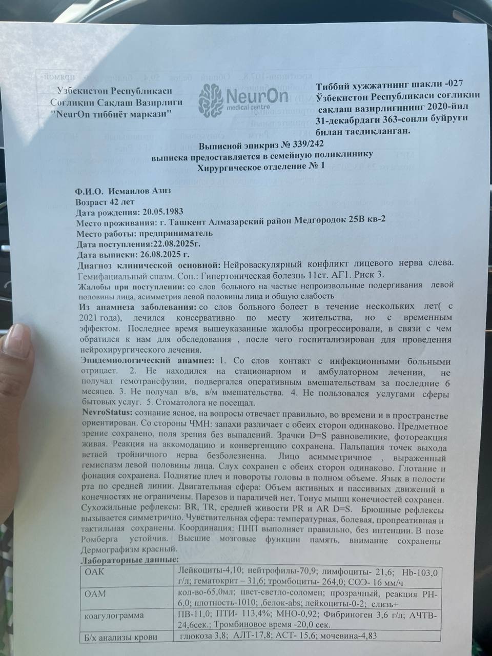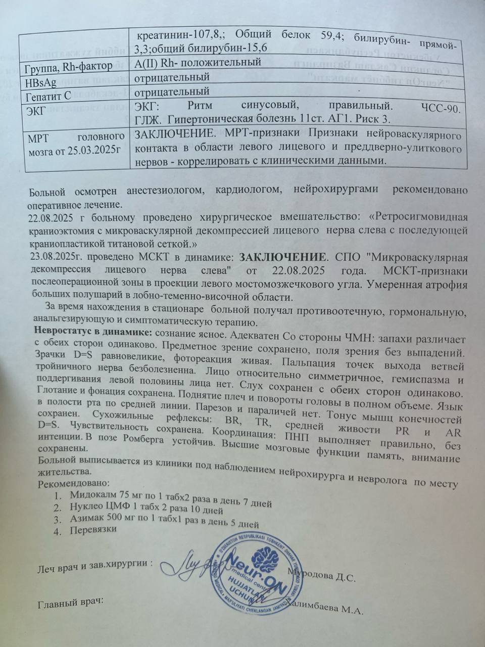 At the same time, I myself recently went through a very serious surgery — microvascular decompression. Because of this, I am unable to work. My body is still weak, and I am in rehabilitation.