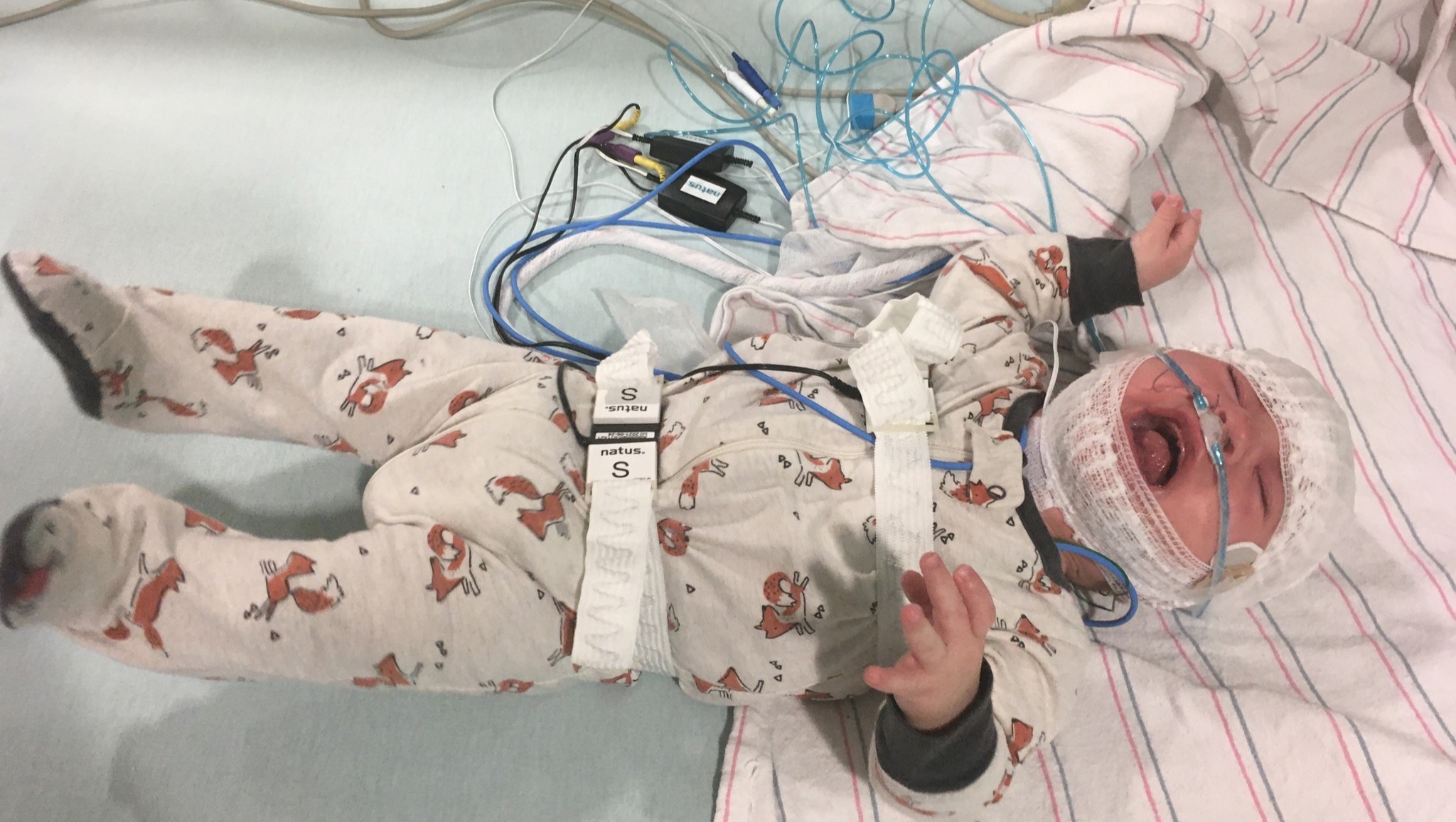 Due to Luke's severe Sleep Apnea, the Cronins had to keep a constant watch of Luke while he was sleeping in order to make sure he was still breathing. They took shifts staying awake throughout the night to watch and feed him. Now he is on oxygen while he sleeps, so they can all rest a little easier.