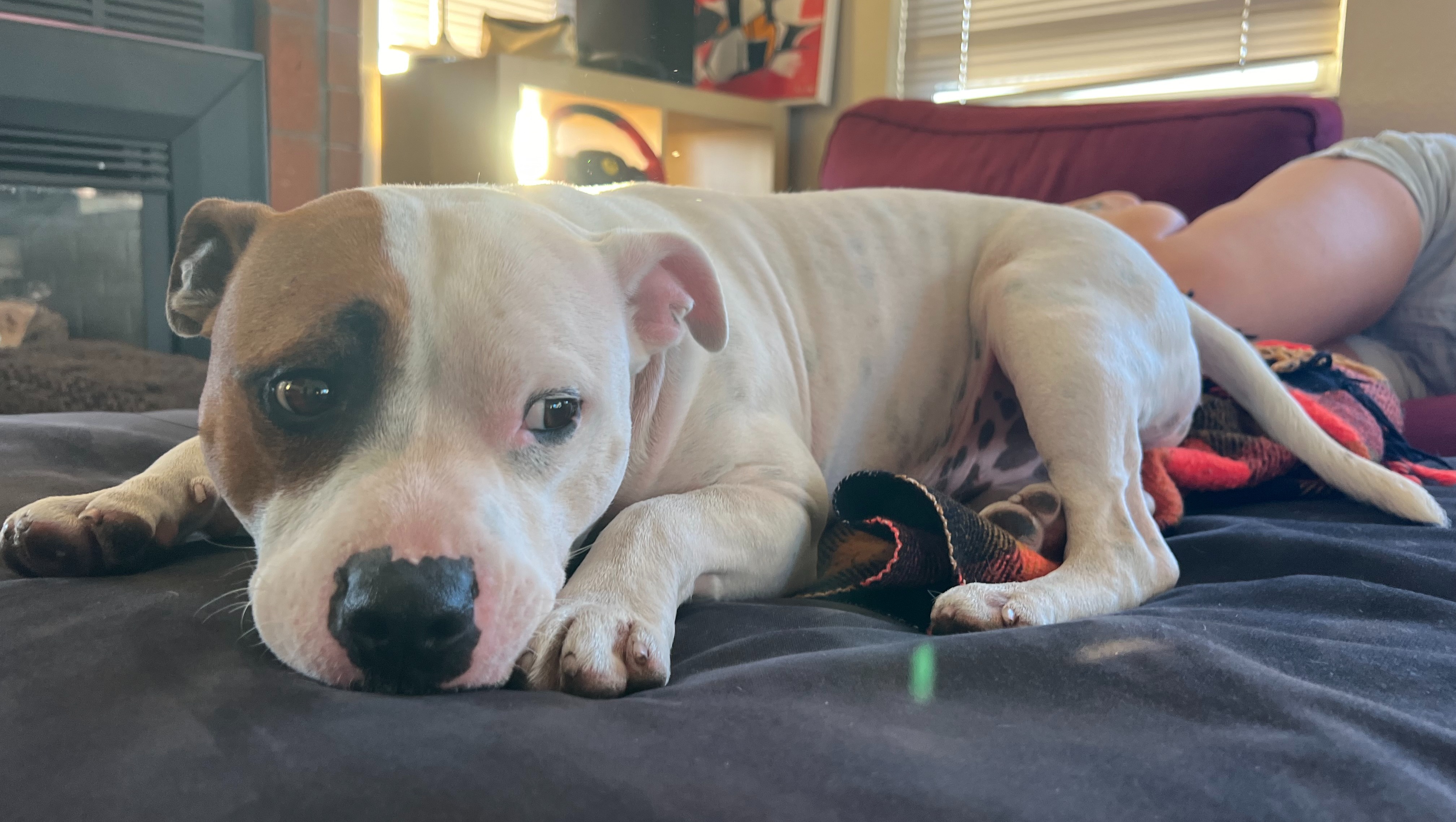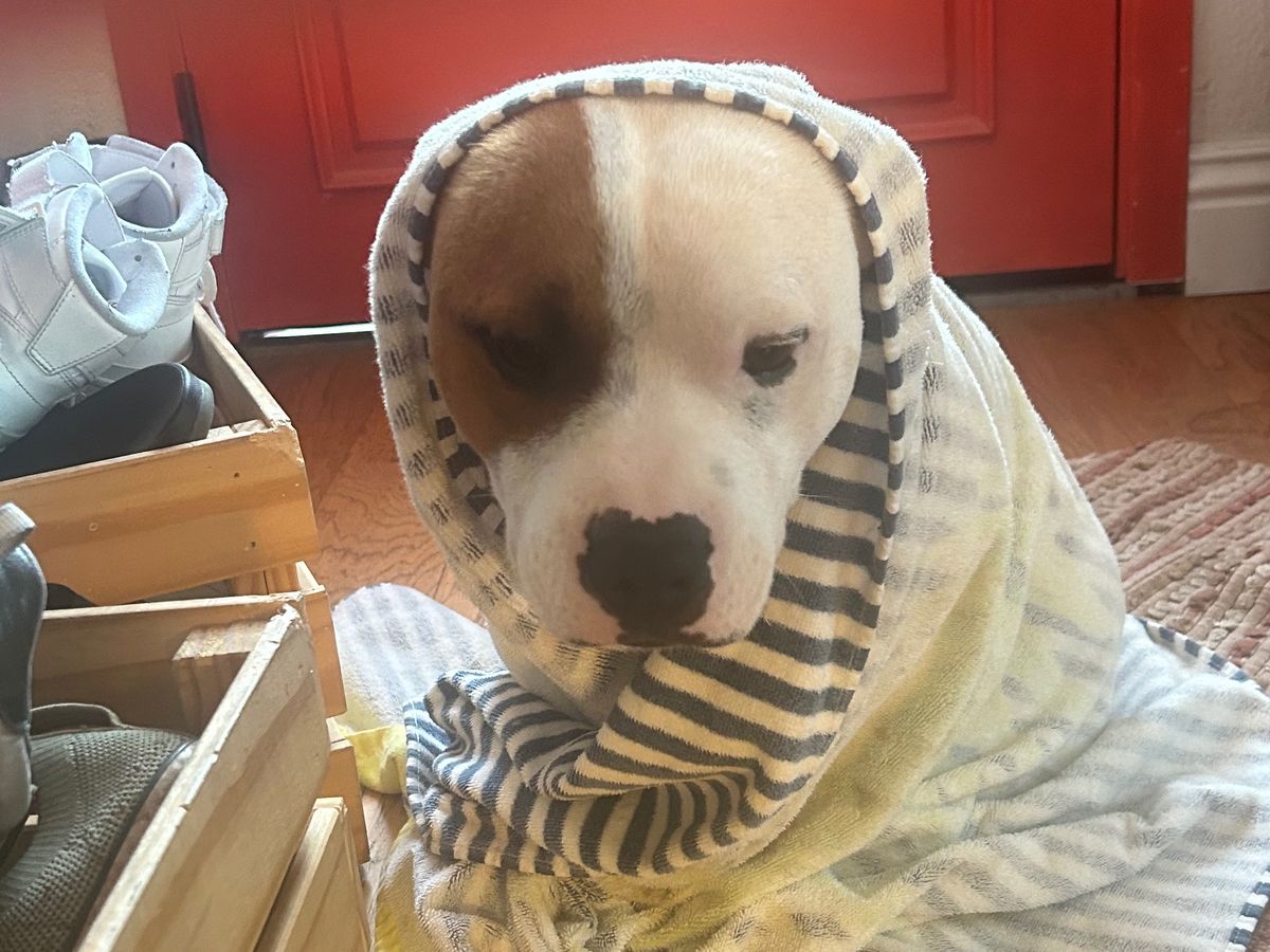 He'd been vomiting and having bloody diarrhea. He's a hungry boy and probably ate a plum pit while walking yesterday. That's our guess for now. We brought him to the vet and he got fluids and antibiotics but he'll need X-rays and hospitalization.