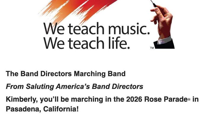 Exciting news! I applied (along with 700 other band directors around the country) for the opportunity to march in the 2026 Tournament of Roses Parade in Pasadena, CA with the America's Band Director Marching Band.