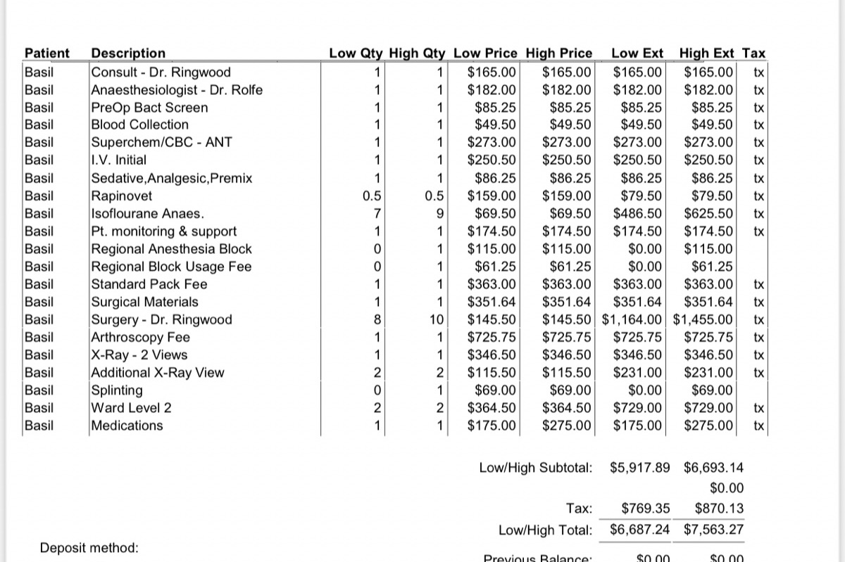 Because this surgery is uncommon in small veterinary hospitals, it require a specialist/ certified surgeon to proceed this surgery and that costs me a fortune without an insurance. With the situation of Covid, I’m also recently gotten laid off, paying this bill is an impossible mission for me. However, Basil needs an immediate medical care for his arm, otherwise the chances of him running again is small.