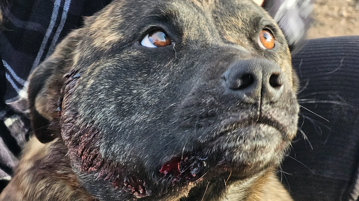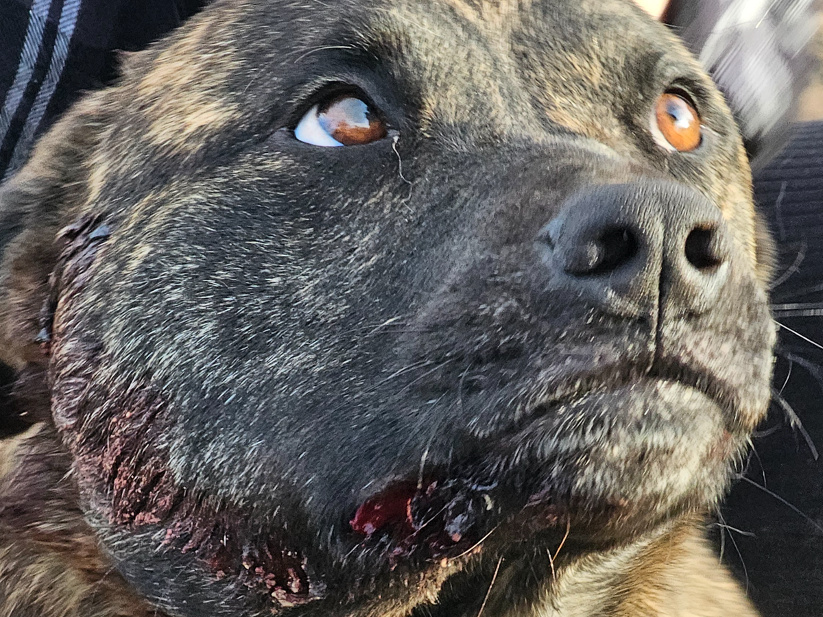 Beans put her life on the line fighting off an intruder last night that burned down her owners 5th wheel. She was sadly shot in the face during the process and looks to have been beaten. She needs a vet ASAP for possible surgery to try and save her life. The bullet appears to have shattered her bottom teeth on the right side. Anything at all helps and is greatly appreciated.