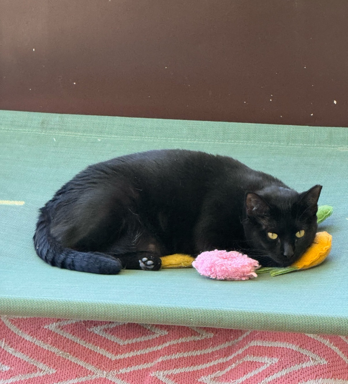 We posted her on Adopt a Pet and Facebook for adoption. Unfortunately, we didn't receive many adoption applications for her, but she was happy and comfy in my home with my kitties, a few who were also waiting for adoption.