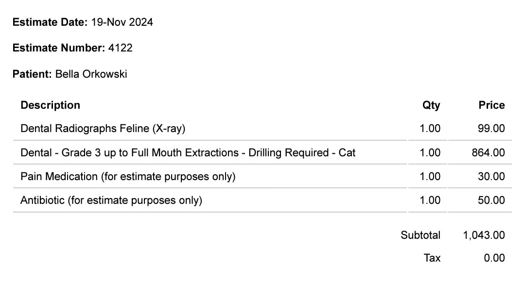 Back in October on halloween i took in this sweet senior baby that has stomatitis and needs her teeth taken care of. I got an estimate from a low cost clinic of a little over 1000 dollars. I currently don't have the funds to do it on my own. If you can help both me and Bella will greatly appreciate it. Bella is a spunky little girl that enjoys naps, chin scratches and forehead kisses. I would love for bella to spend the rest of her senior years comfortably. Any donations over the needed costs will go towards getting other cats in need TNR!!! Thank you ❤️
