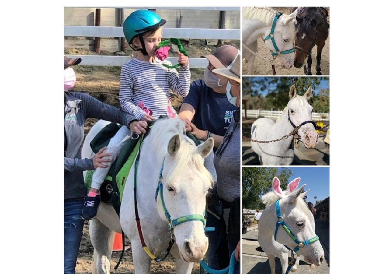 Our beloved Bella is such a wonderful pony and has been a true asset to both our lesson program and Surf and Turf, the therapeutic riding program at our ranch. Bella has given me her heart and soul for so many years, touching the hearts of so many kids with her gentle demeanor and kind and forgiving attitude. She's been a teacher for so many kids learning to ride and given them so much joy, and it just breaks my heart to see her in any pain or discomfort at all. It saddens me to see her with such an injury where she can't be ridden or enjoy doing what she loves to do. Bella has dedicated her years to teaching young riders and giving them confidence and wonderful experiences. I only wish I can give back to her what she has given me year after year.