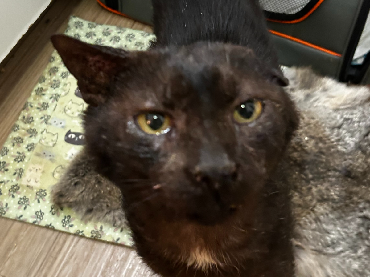 It was clear at a glance that his skin was in really bad condition, and compared to the other street cats, he was in much rougher shape, with an open wound and severely underweight. The vets also discovered that he is missing a lot of teeth, has stomatitis, a heart murmur, a hernia that requires surgery, an upper respiratory infection, and needs to be neutered. He also has cryptorchidism, which means that one of his testicles did not descend, and that is another surgery he needs.