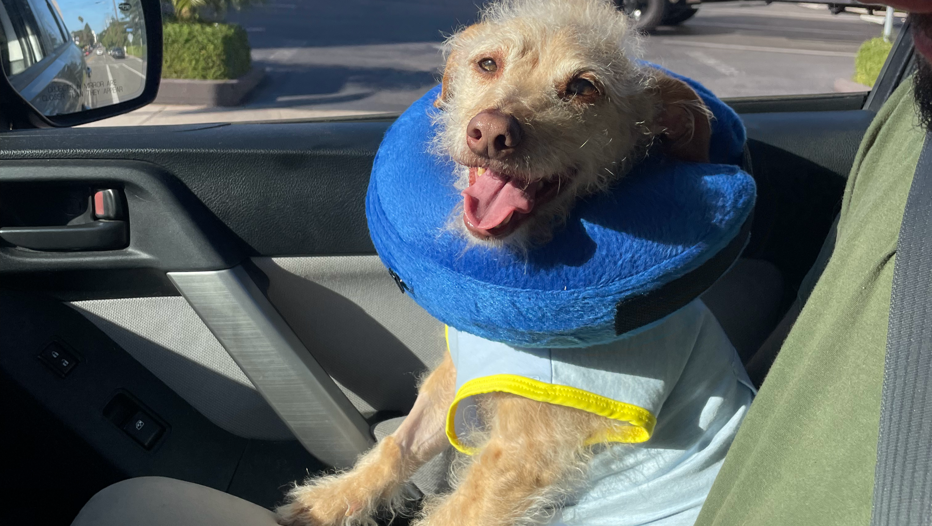 October 9th update- His surgery went so so well! He is all set up in his post surgery outfit and his little protective donut. He is acting himself again, and has energy and is very happy. He went on his first outing since the surgery last night, and he had a great time. He has about 10 more days to heal completely from the surgery, and then we will be able to get the stitches removed.