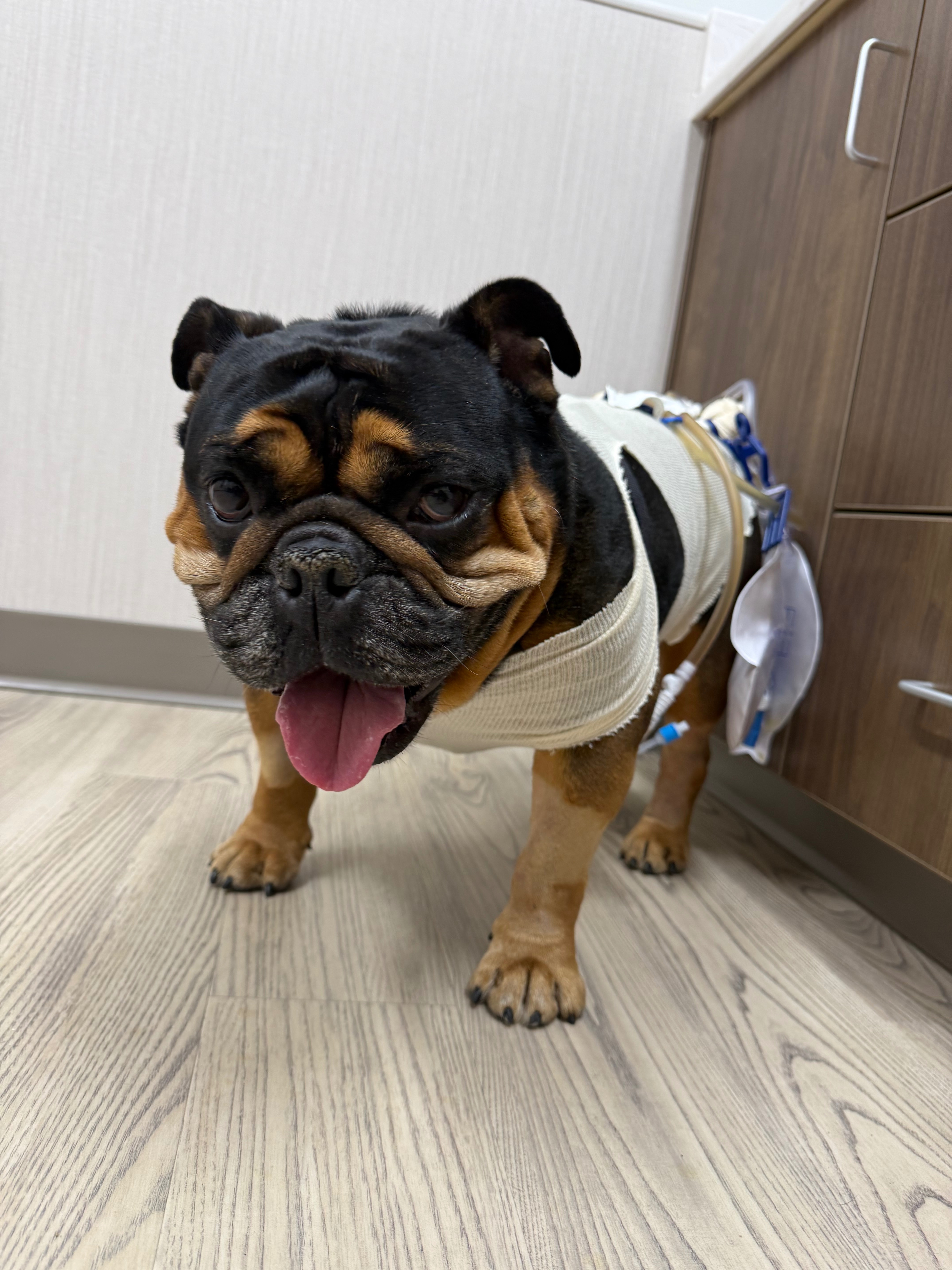Biggie has been my bestfriend for the past six years, and recently, he faced a life-threatening medical emergency. On Tuesday morning, Biggie appeared as if he was unable to pee, so out of concern I took him to his vet, where they discovered he physically could not urinate. A catheter was placed which showed that his bladder was full. The vet drained his bladder and X-rays and a ultrasound were scheduled for the following morning because of the time. Out of concern I asked the vet if it was safe to wait till the next morning given that it was almost 5pm that day. The vet assured me it was but let me know that he appeared in pain or discomfort to rush him to an emergency vet due to concerns of his bladder rupturing or his urine backing up into his kidneys. When we got home, I tried feeding him and took him out to see if he would urinate but when he tried, Biggie cried out in pain, prompting me to rush him to an emergency vet. after hours at the ER vet, X-rays and an ultrasound revealed that biggie had bladder stones, an obstruction in his urethra and an enlarged prostate. This meant that he needed to undergo emergency surgery. The ER vet unfortunately did not perform this type of surgery. They did assist with draining his bladder again and I was able to bring him home for the night with the understanding that he needed to be transferred to a different animal hospital in the morning. After spending the night at home, I took him back to his vet, who drained his bladder for a third time and sent us to another emergency hospital.