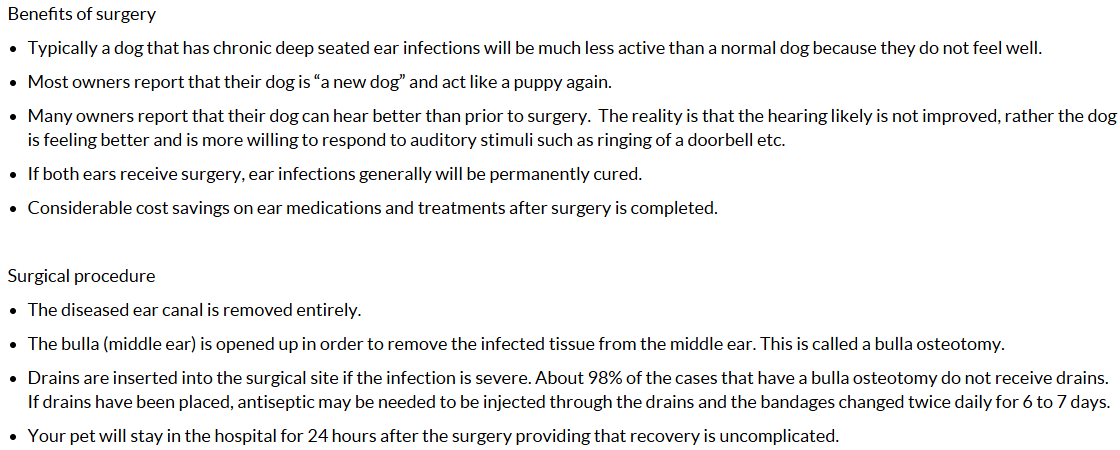 In December of 2025, Billy's new vet brought up major concerns regarding the mass inside of his ear. She had mentioned something called a TECA, which stands for Total Ear Canal Abolition. Yes, it's basically exactly what it sounds like. We thought we could just get the initial infection treated and Billy would be okay. As I write this in January of 2026, Billy's vet has done all she could do for treating his ear infection and we now have to get Billy a TECA in order for him to live a comfortable life, not in pain.