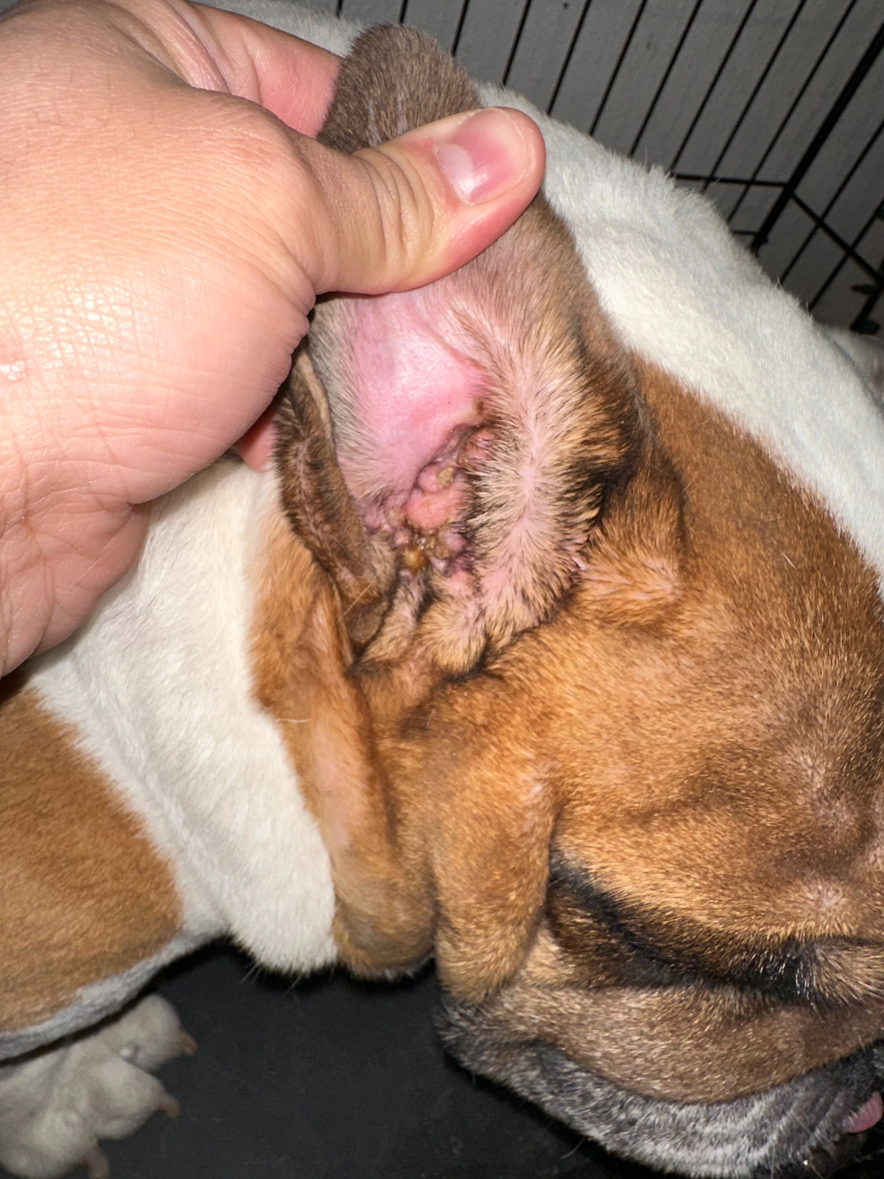 In July of 2025, Billy's ear infection came back. This time, it came back with a vengeance. Billy's ear seemed more swollen and agitated than ever. The little bit of extra tissue in Billy's ear turned into a flesh mass blocking his entire ear. We quickly took Billy to the vet again where we were told by a Veterinarian, different from his original vet, that she would refuse antibiotics for Billy. Due to not being able to afford any of the other Vet Hospitals in our area, we were at a loss. After months of trying countless Amazon products and Vet recommended products, we finally found a Vet Hospital with affordable prices.