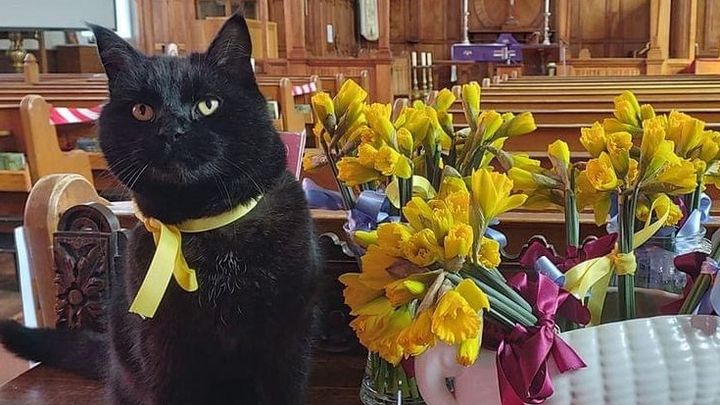 Blackie is part of our church life down at All Saints he is a real character and loved by many. It looks like his bills are going to be extensive but he is so worth it This was him only a couple of weeks ago giving out flowers for Mother Day he is so photogenic. If anyone wants to help make a donation towards his vet bills please do donate.