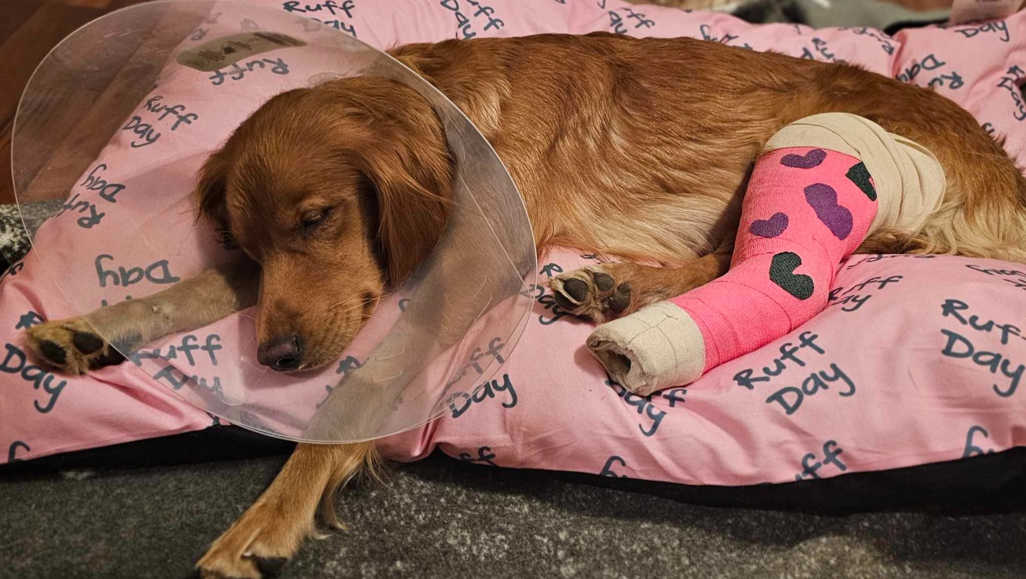 Hello friends! Many of you have been following our story since Jan. 15th when all 3 of our golden retrievers ran away. The community, family and friends stepped up and rallied around our family and pups and got them home! As of this morning, Jan. 21st our 3rd pup has finally been brought home. Blossom was found this morning hobbling on 3 legs. As soon as she was brought home, we immediately turned around and brought her to an emergency vet only to learn that our girl has severely broken her left rear leg. The doctors did everything they could to set it back to normal but because of the severity of it she needs to get orthopedic surgery asap.