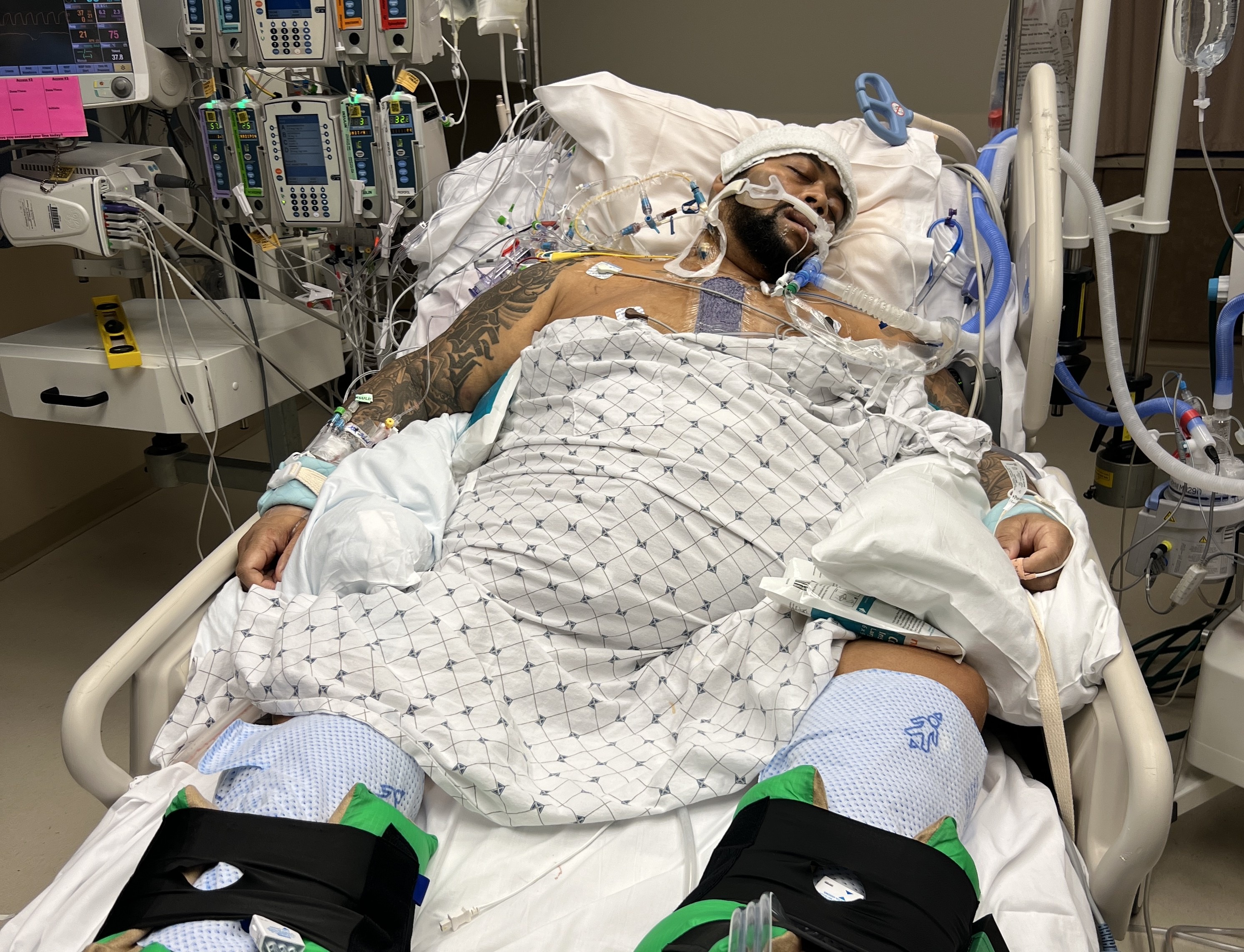 Video/photo captions: The first four photos are from mid-December as we wait for the heart transplant committee to make its decision. The other included photo is Bobby at the ICU after his LVAD surgery when he was in a medically induced coma for a week.