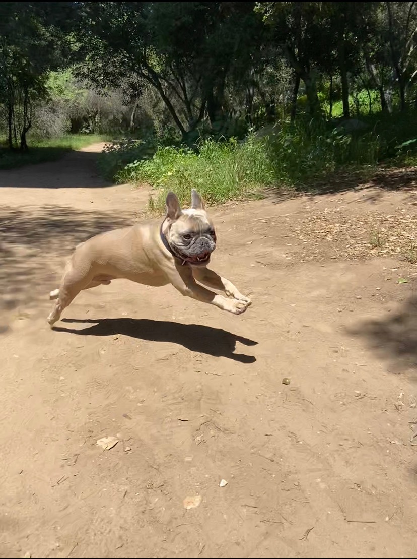 Bodhi is a sweet French Bulldog who is a regular at Runyon Canyon and Wattles Garden Park. He plays with his friends out front of our condo on the grass but may be leashed at Wattles Garden as there is a lot of ball throwing and he's a ball thief. He's very sweet and important to me and my family. I'm a single mom of my fur baby so he's my world, but he's also important to my two nieces and nephew, my friends and neighbors and their fur babies, and other fur babies in our extended family.