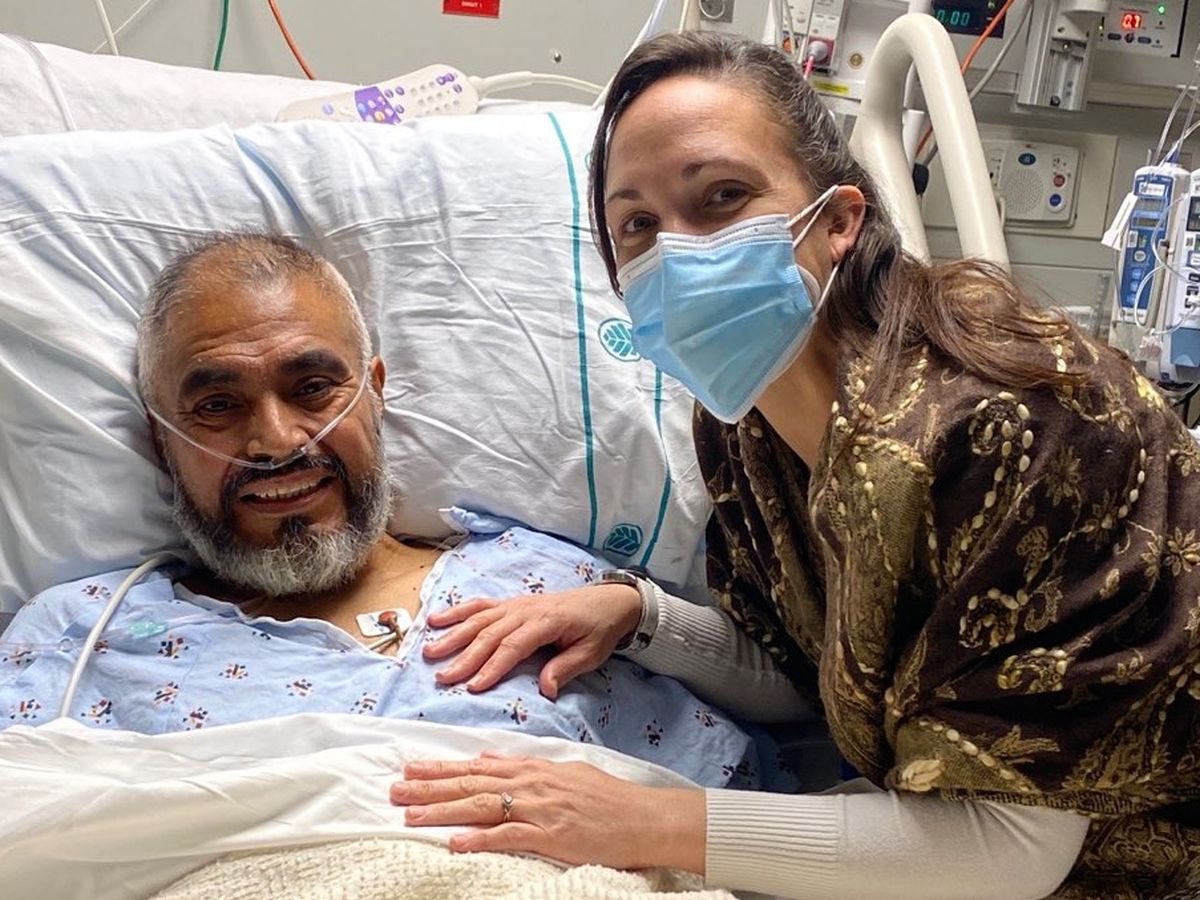 Later that evening Boni went into cardiogenic shock with very poor cardiac function. His ejection fracture (EF) was under 5%, which is not life sustaining. He was taken to the OR and placed on both an ECMO machine (to bypass his lungs and heart) and an Impella/LVAD machine (to help pump his left heart). He was also placed on NoxBox (a nitric oxide gas to help his right heart function). At this point he was on maximum life support measures for very severe heart failure from his heart attack. He had a multidisciplinary team rounding on him daily. They explained he had a poor/guarded prognosis with 30-50% chance of survival. She learned he was the most critical adult patient in the entire hospital. His team decided to take him back to the heart cath lab on 1/19/22. They found a new 100% LAD blockage, while the OM stent was working well. This explained why he worsened in the ICU. The cardiologist placed a second stent in the LAD. The goal was to open up the new artery blockage, hoping to improve the blood and oxygen supply to his heart muscles, to then improve his heart pumping function.
