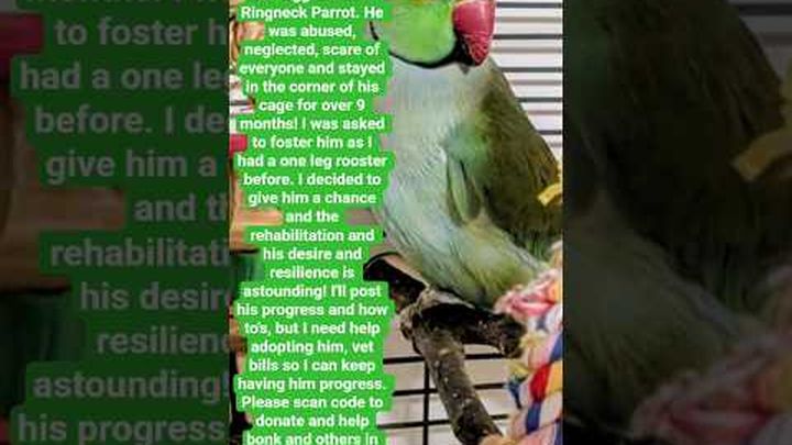 Bonk is my Indian Ringneck parrot who has already been through so much in his life. After a traumatic experience where his mate bit off his leg, Bonk was left with only one leg and then suffered further abuse. Despite everything, he still has so much love to give, and I am determined to give him the safe, caring home he deserves.