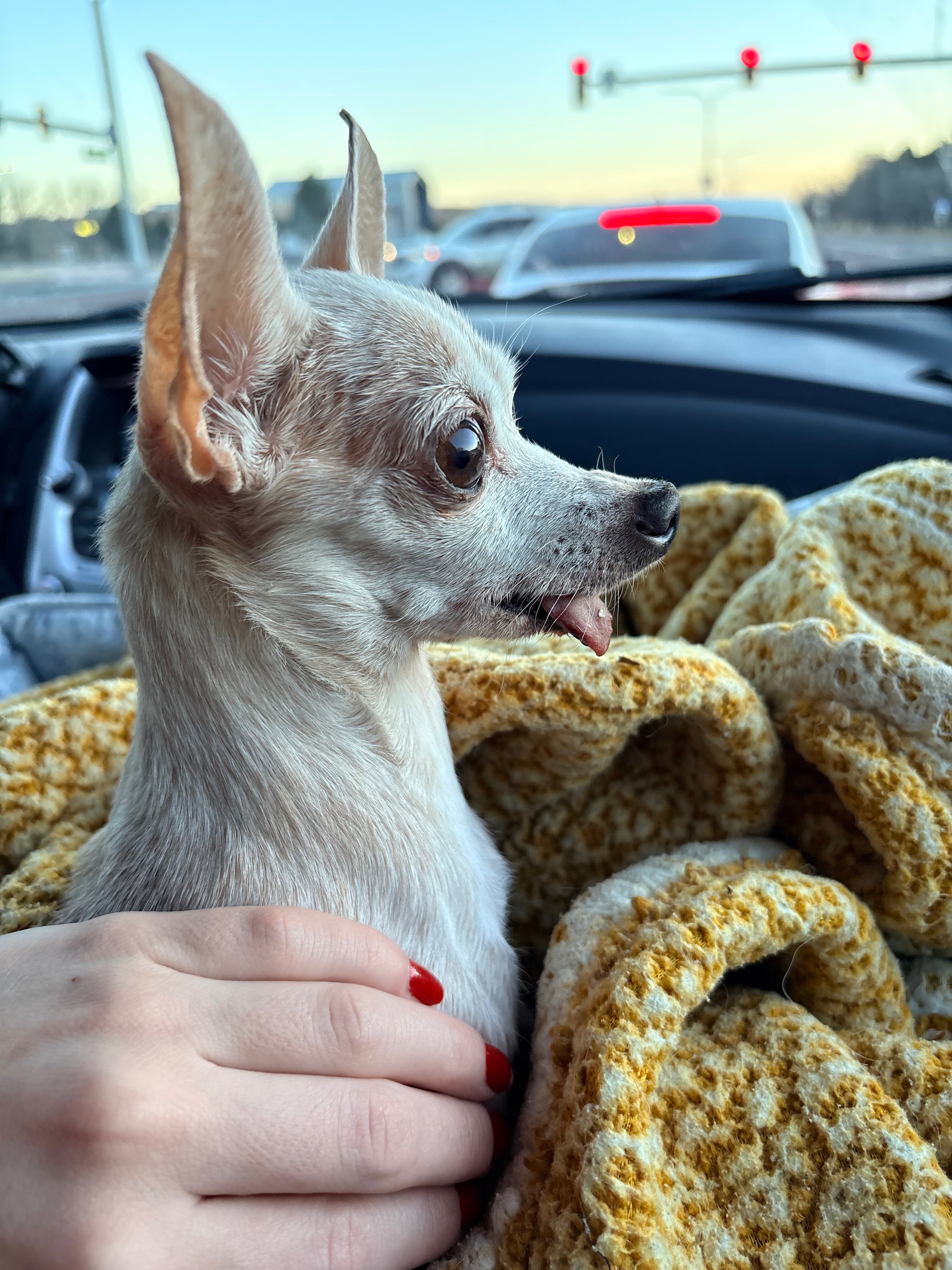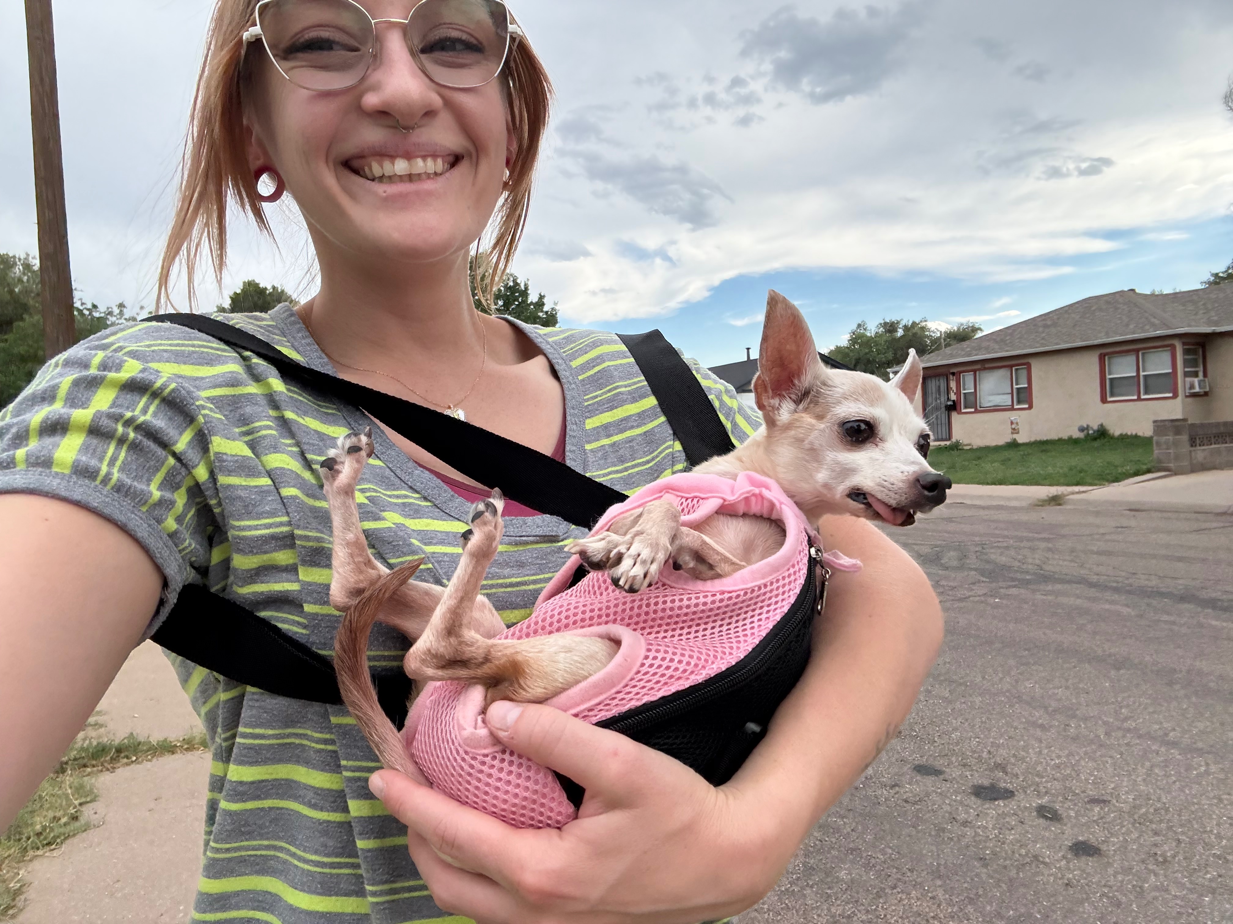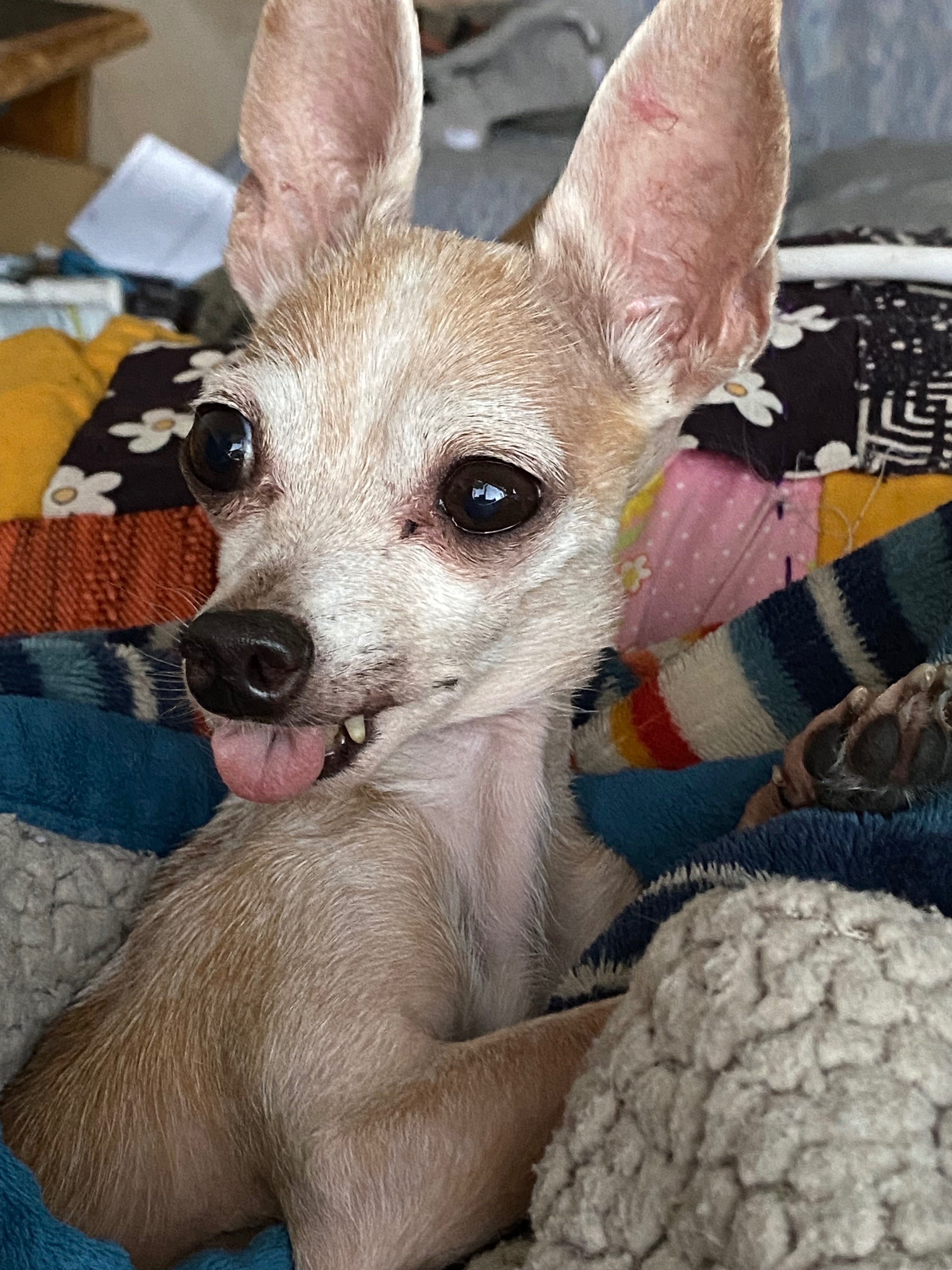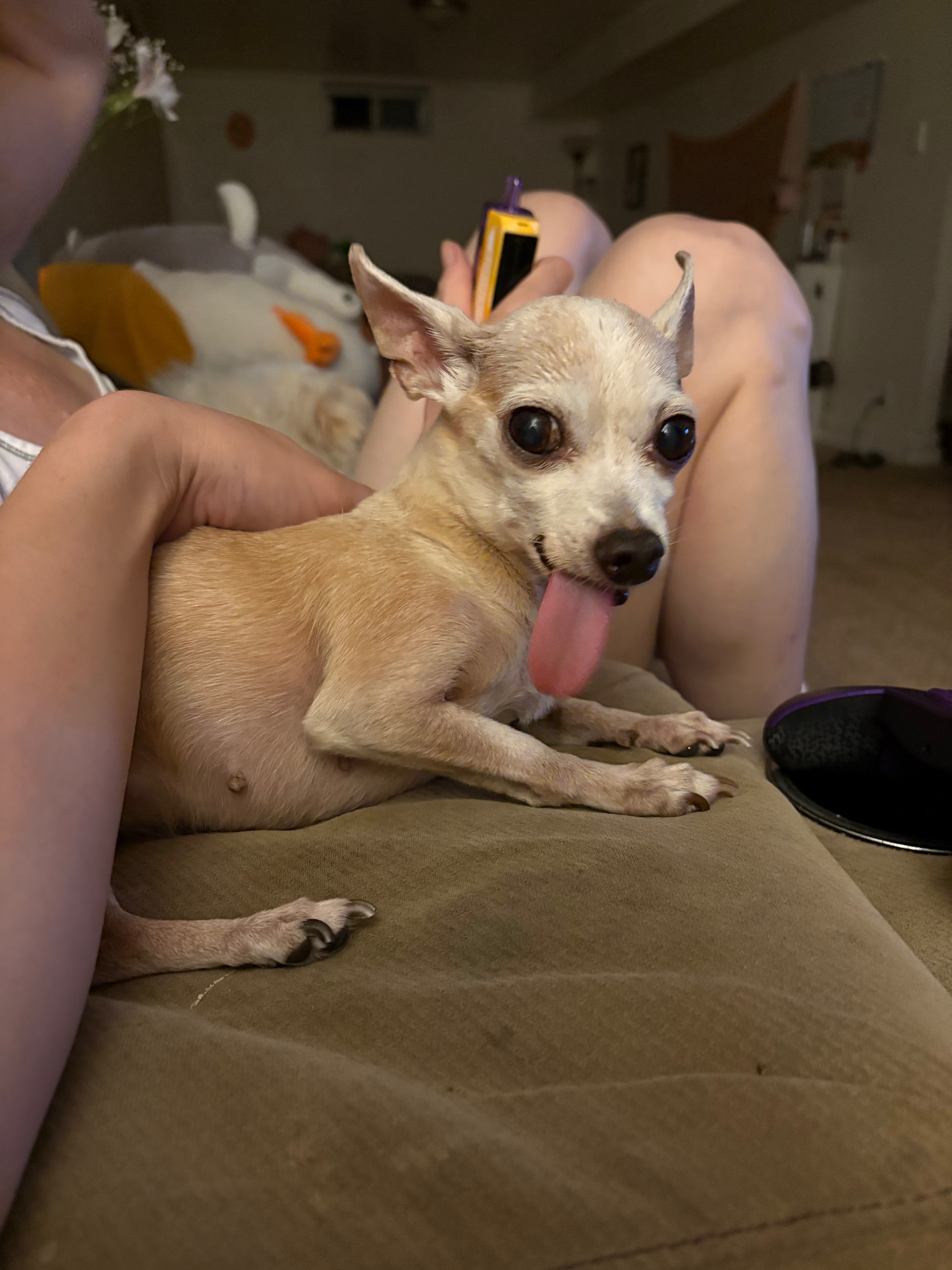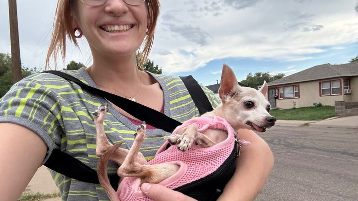 Bowie is a 15-20 year old chihuahua that I found malnourished in a parking lot three years ago. Since then, she has come so far—she’s got so much personality and character, and she’s the best cuddler. I can’t imagine my life without her, and she means the world to me.