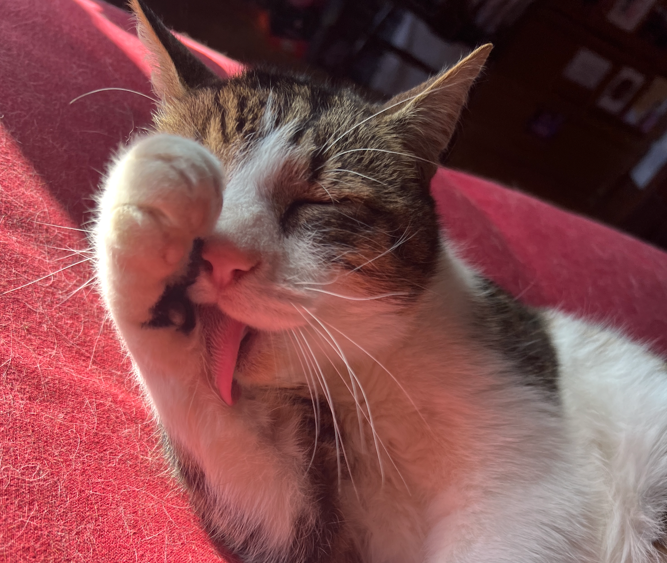 Hi everyone, my name is Sofia and this is my beautiful cat Bramble. He is 14 years old (his brother/littermate is the black cat in one of the photos)