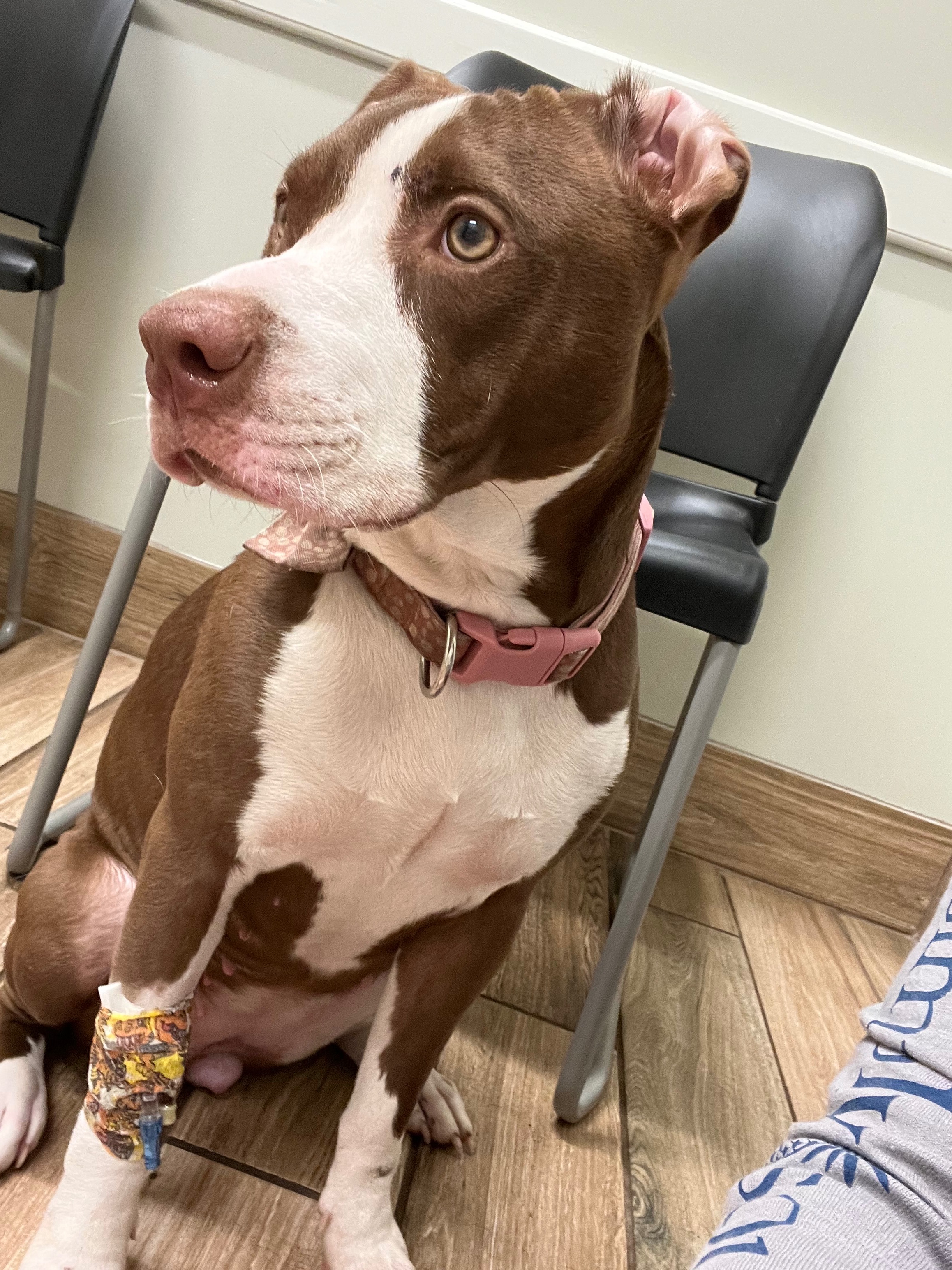 A few nights ago Abbie was hit by a car. It was one of the scariest moments of my life. I rushed her to the vet and they found she had a pneumothorax (collapsed lung) and very severe trauma that caused her liver enzymes to spike extremely high. She has been hospitalized while they drained the air from her lungs and monitored her closely.